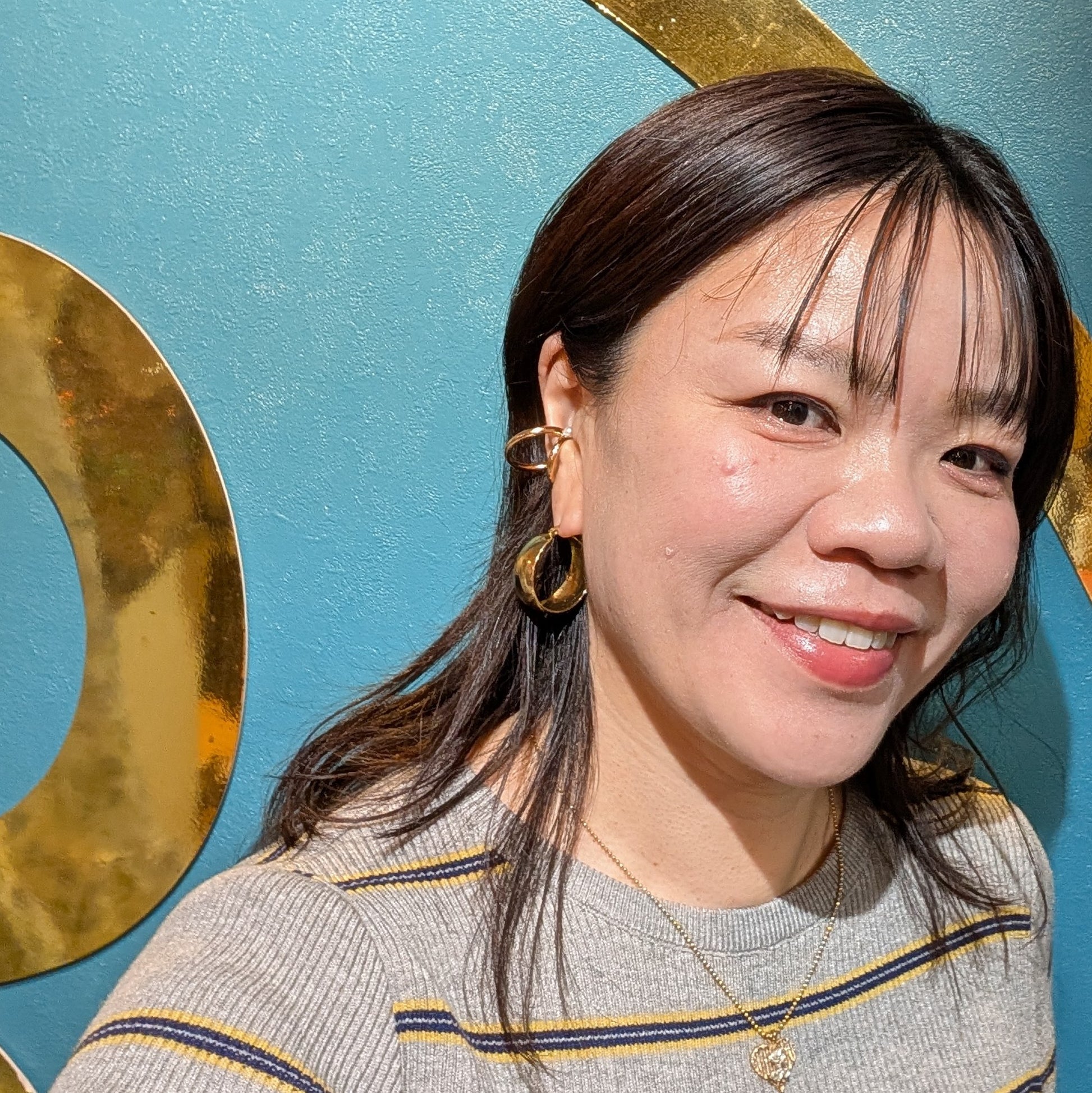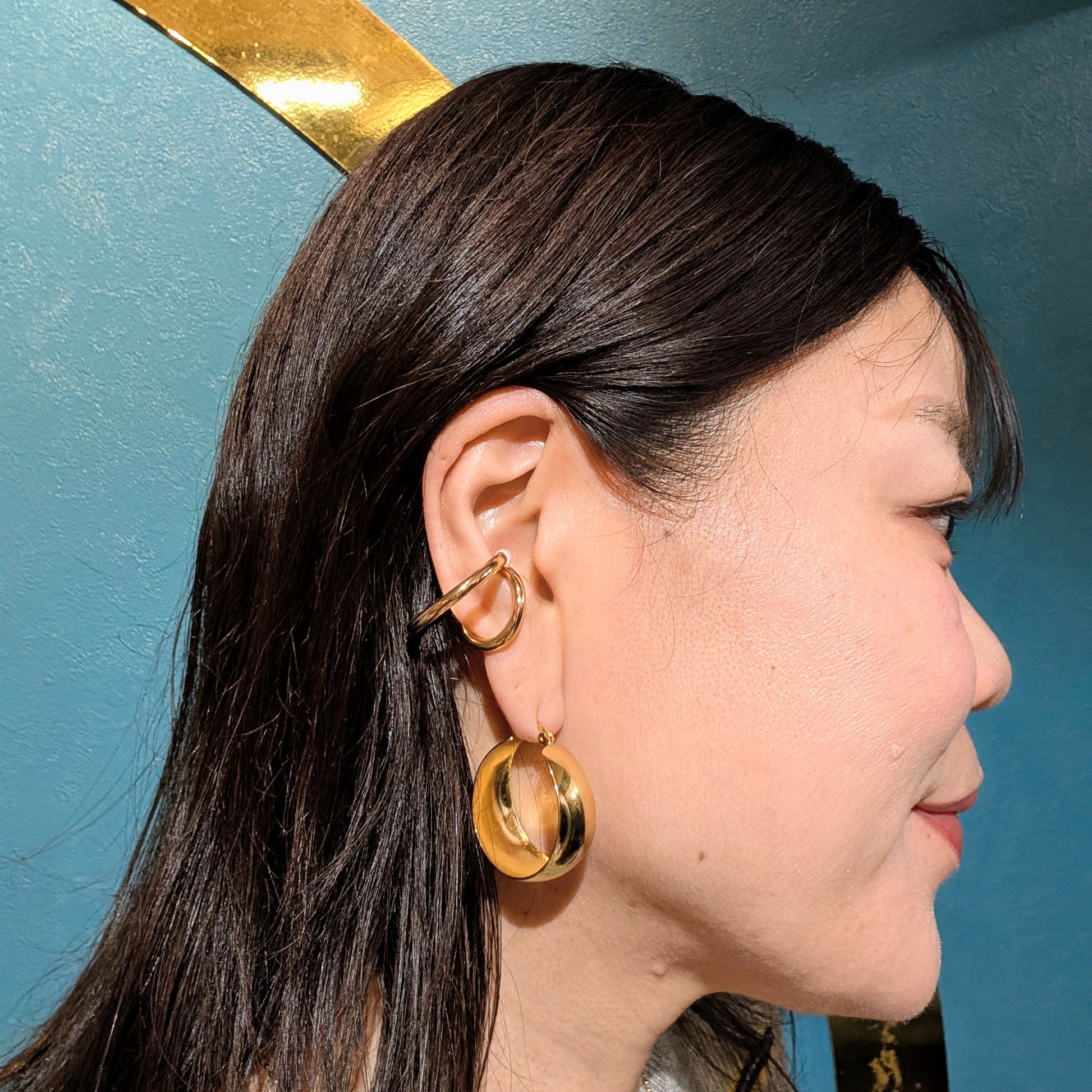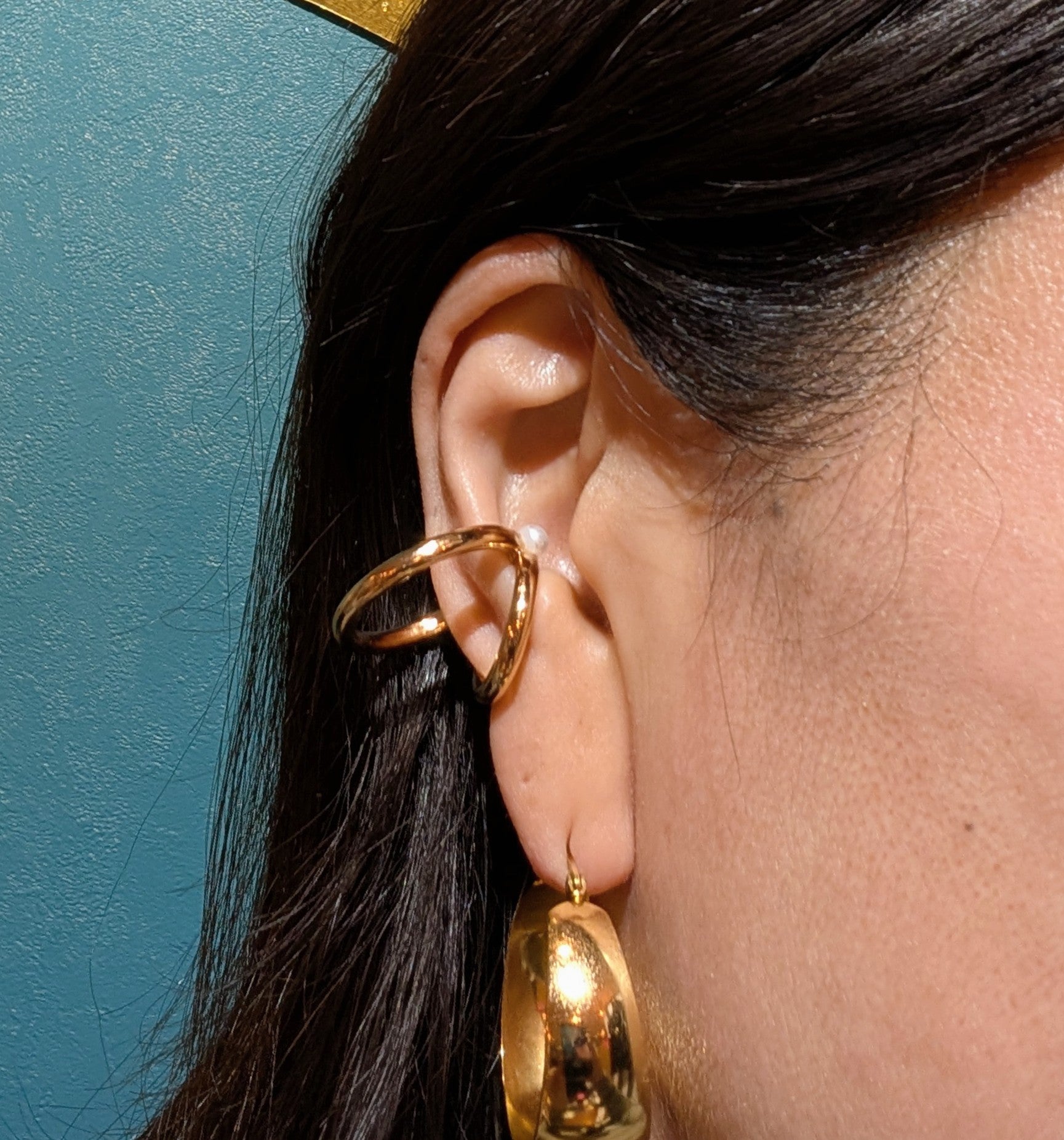 大小二つのイヤカフを付けているように見えるデザインのイヤカフ。