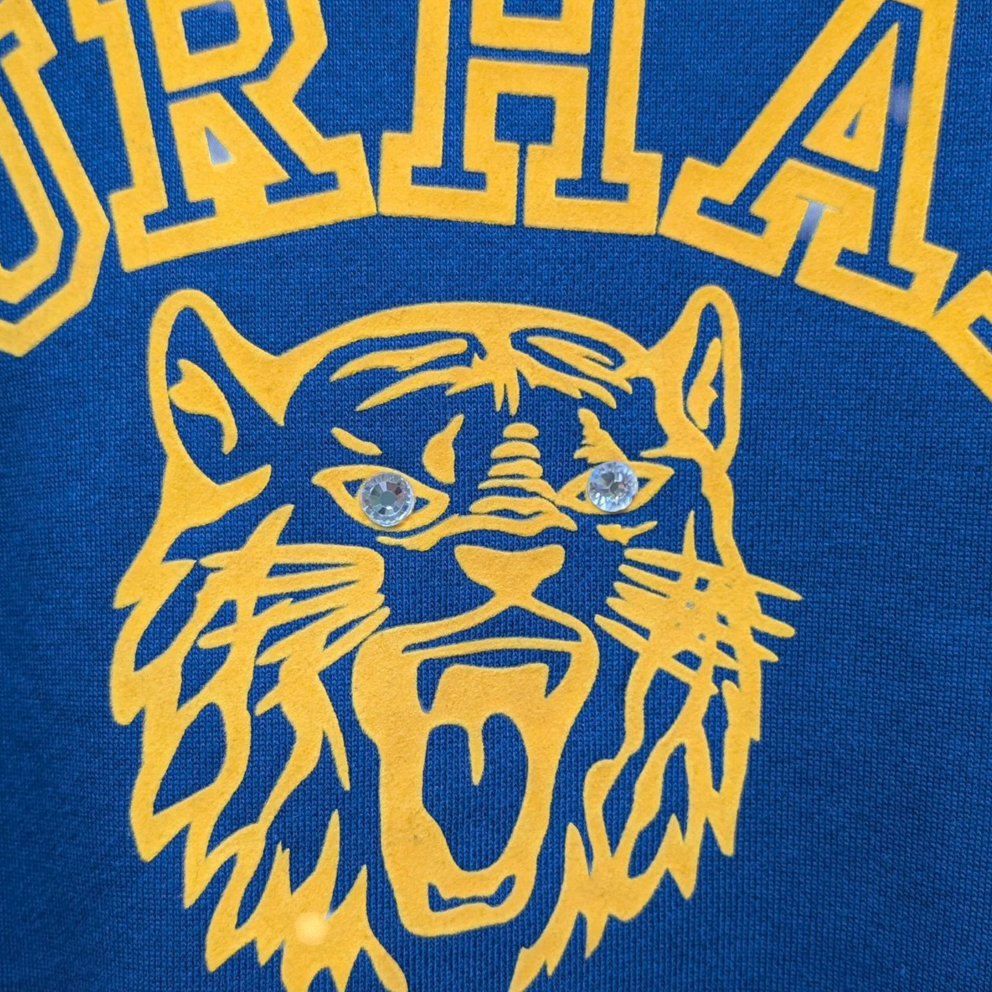 よくあるプリントで終わらず、トラの目にラインストーンを付けることでビームが出ているように見えます。
