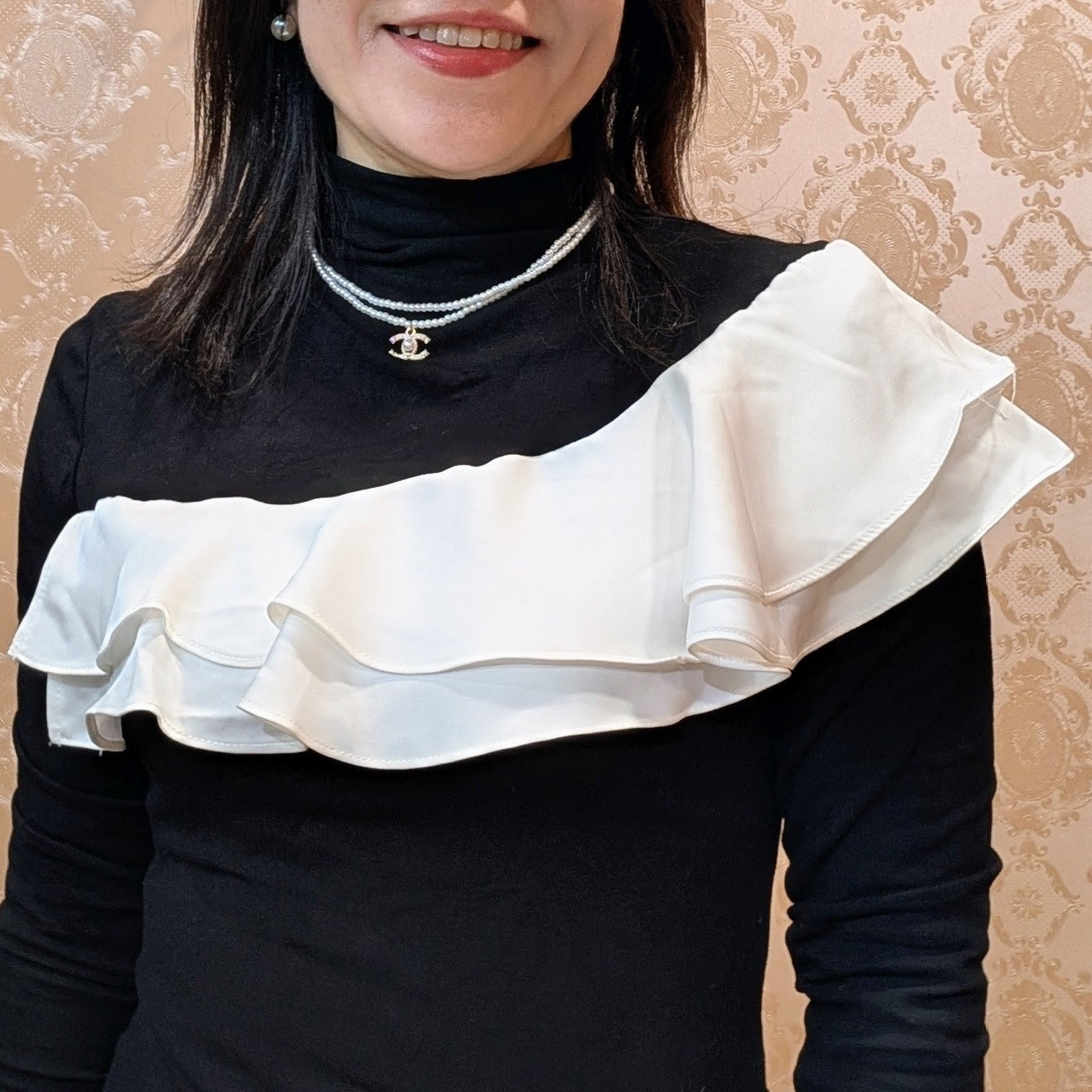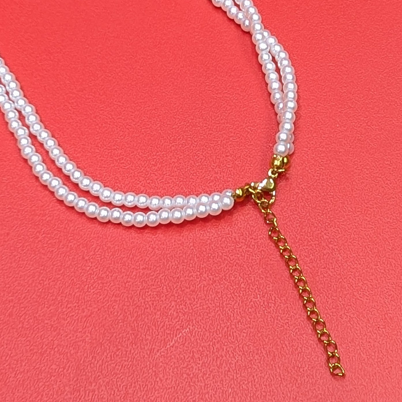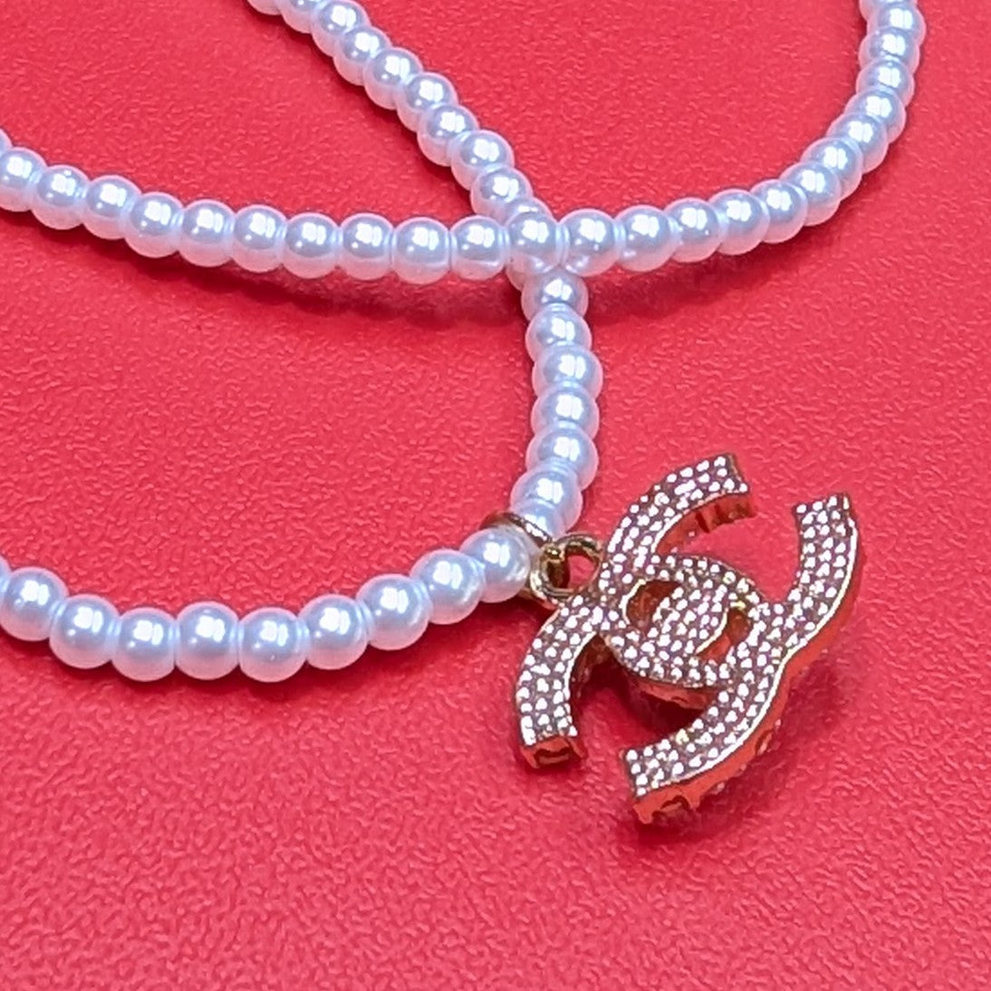 小粒パールの2連に素敵なCCマークチャームが付いたネックレスです。