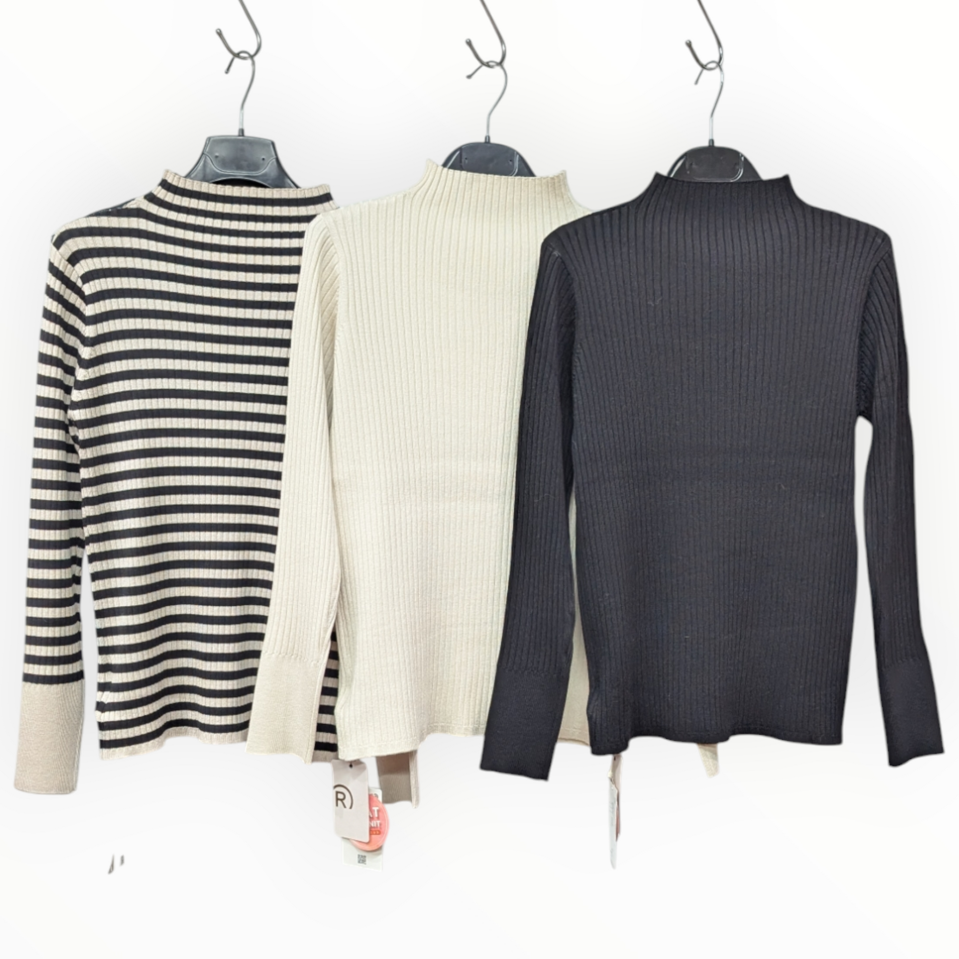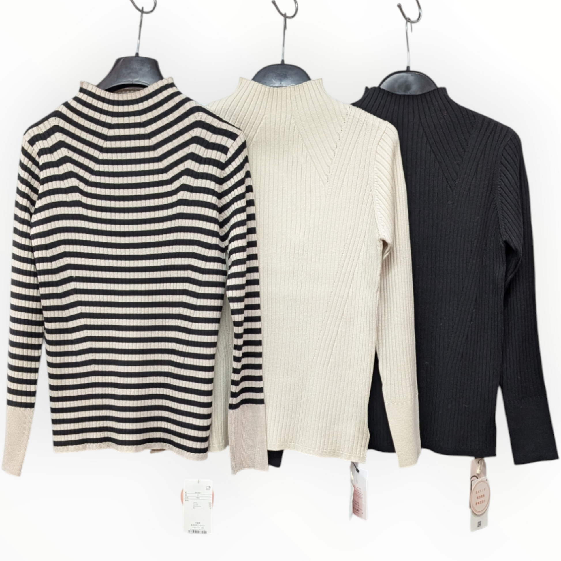 フィットアンドフレアリブハイネックニット