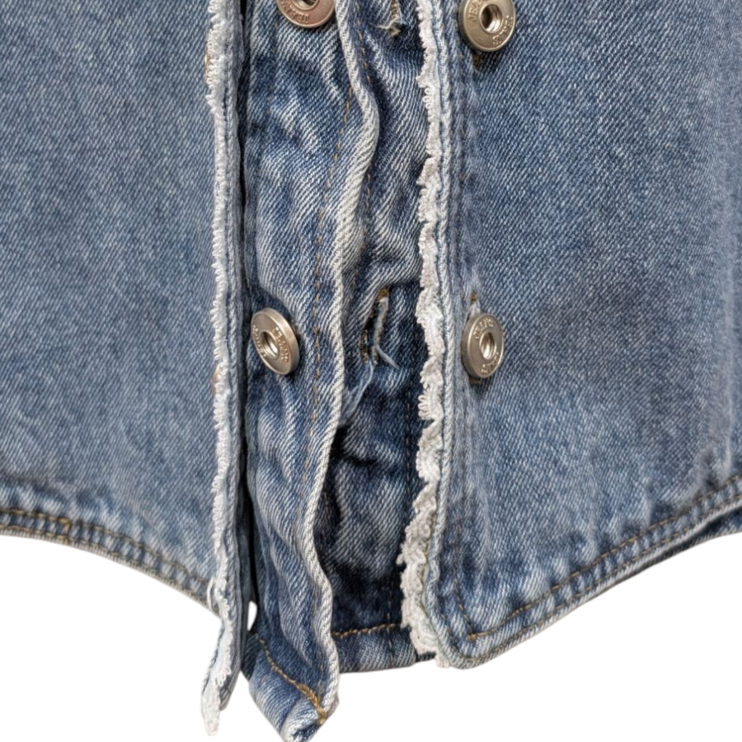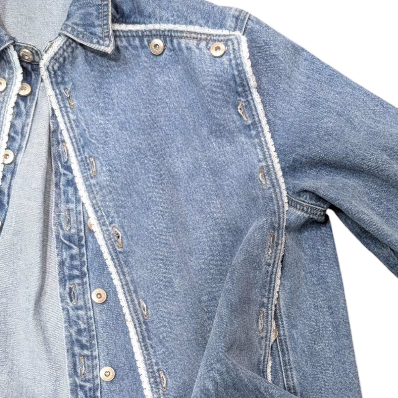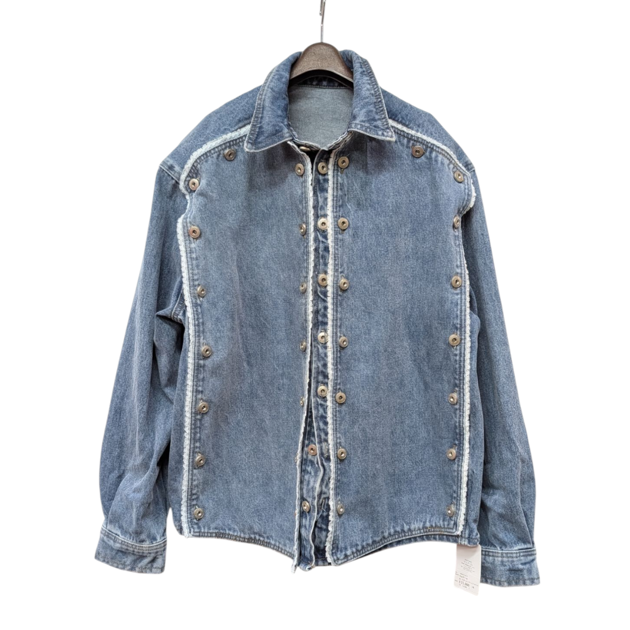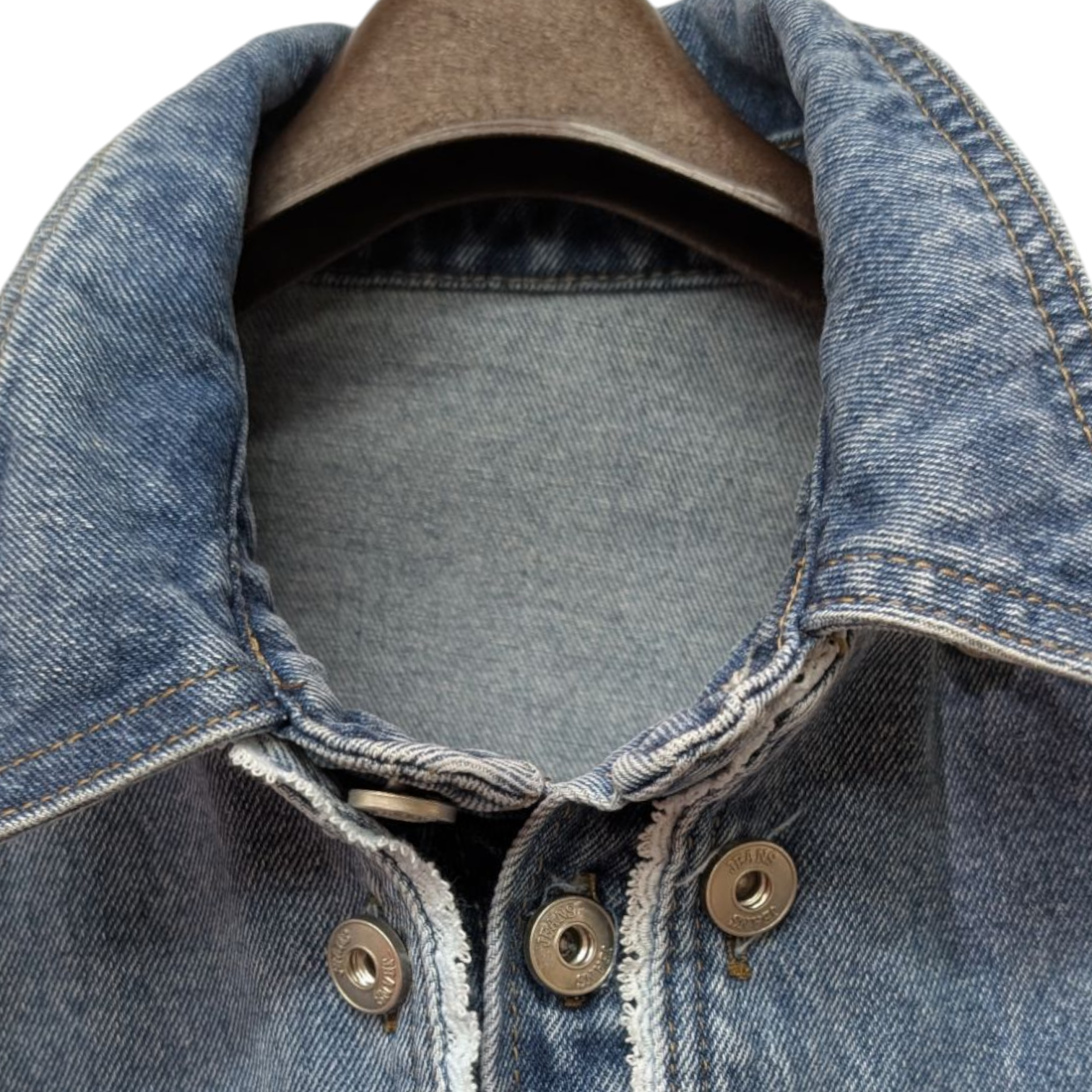 前身ごろの布がボタンで着脱可能なナポレオン風デニムジャケットdえす。