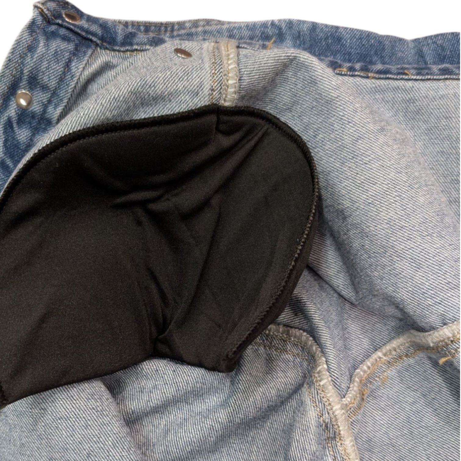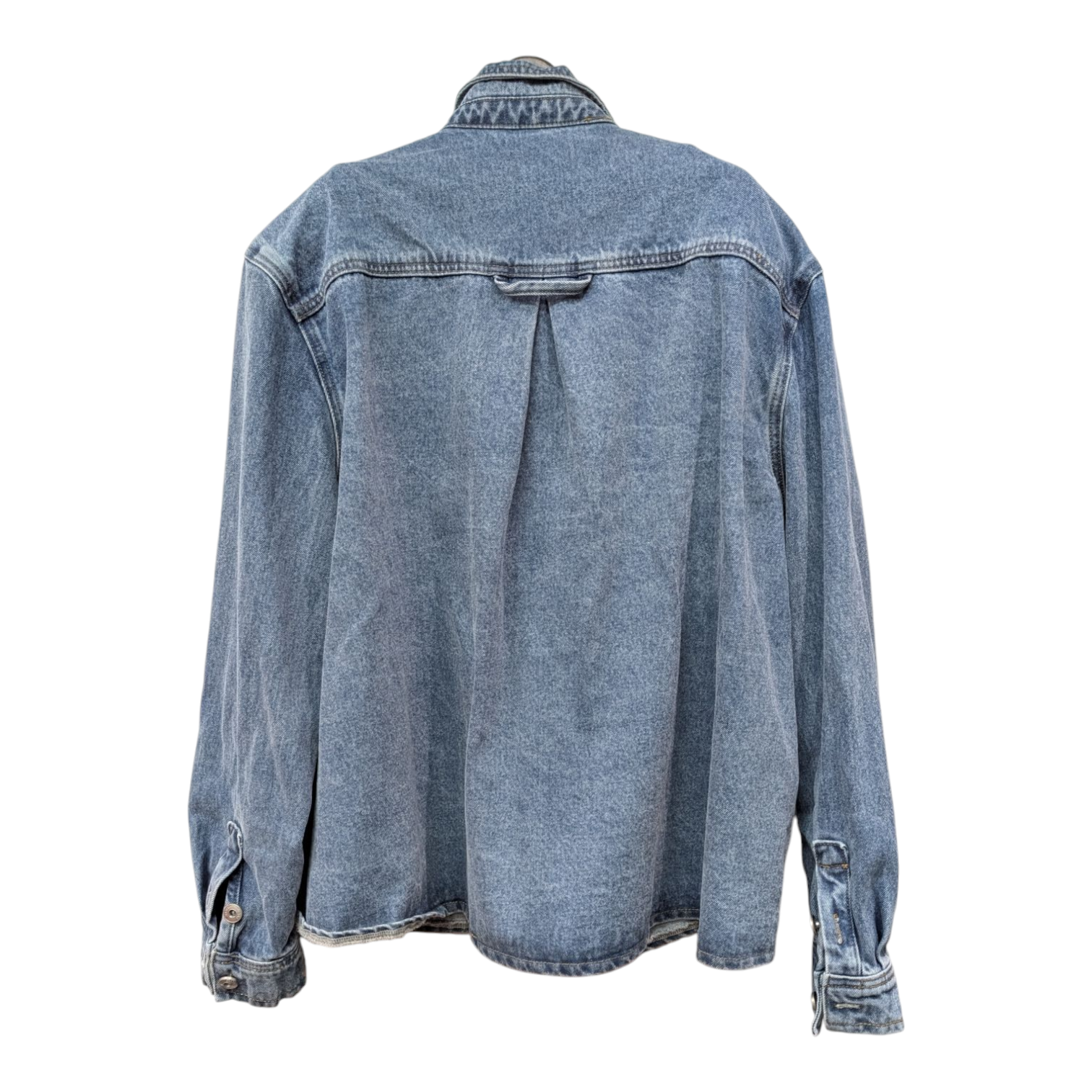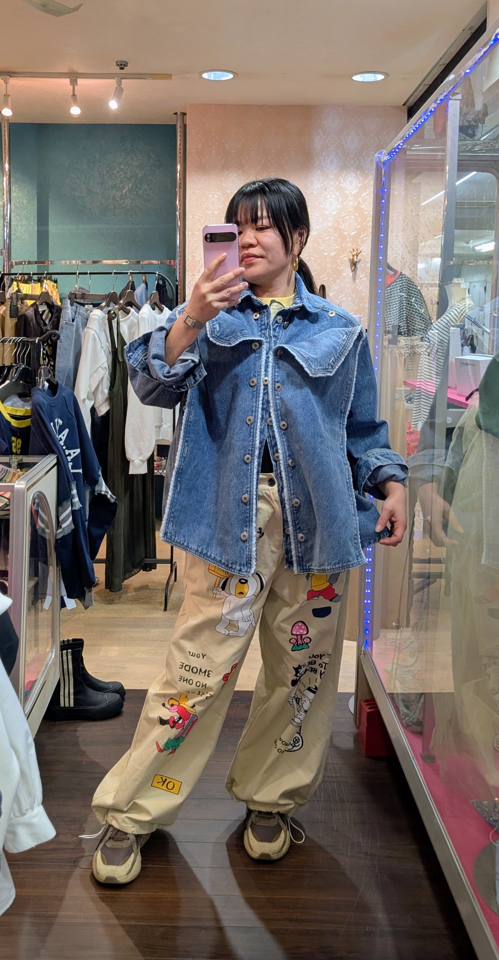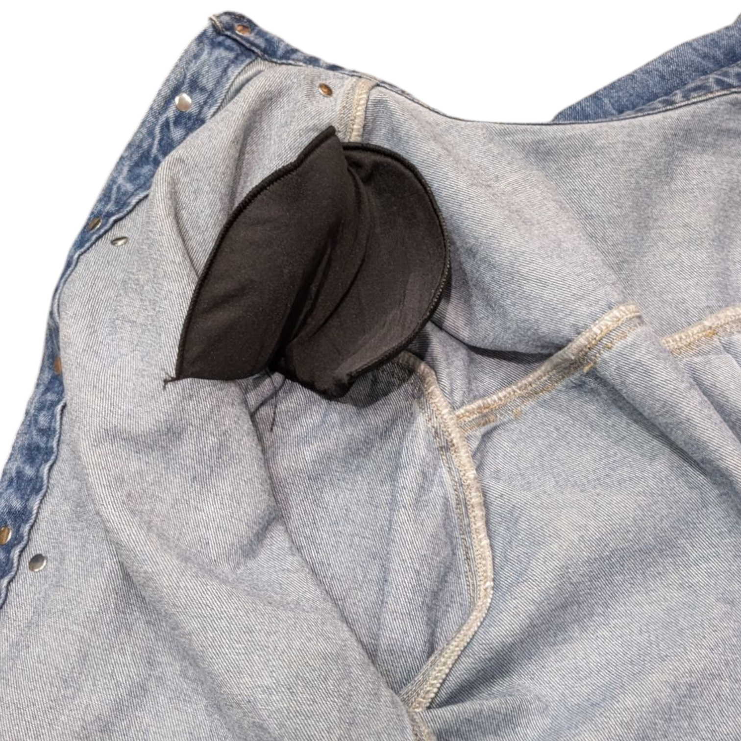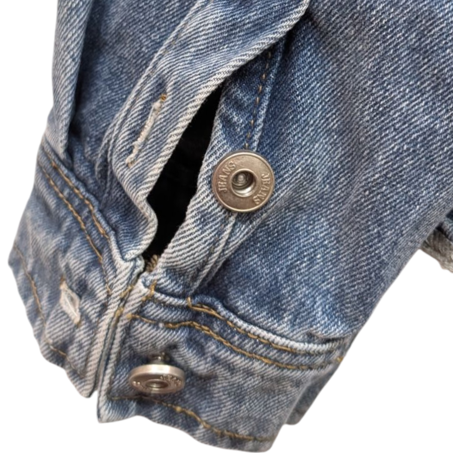 前身ごろの布がボタンで着脱可能なナポレオン風デニムジャケットdえす。