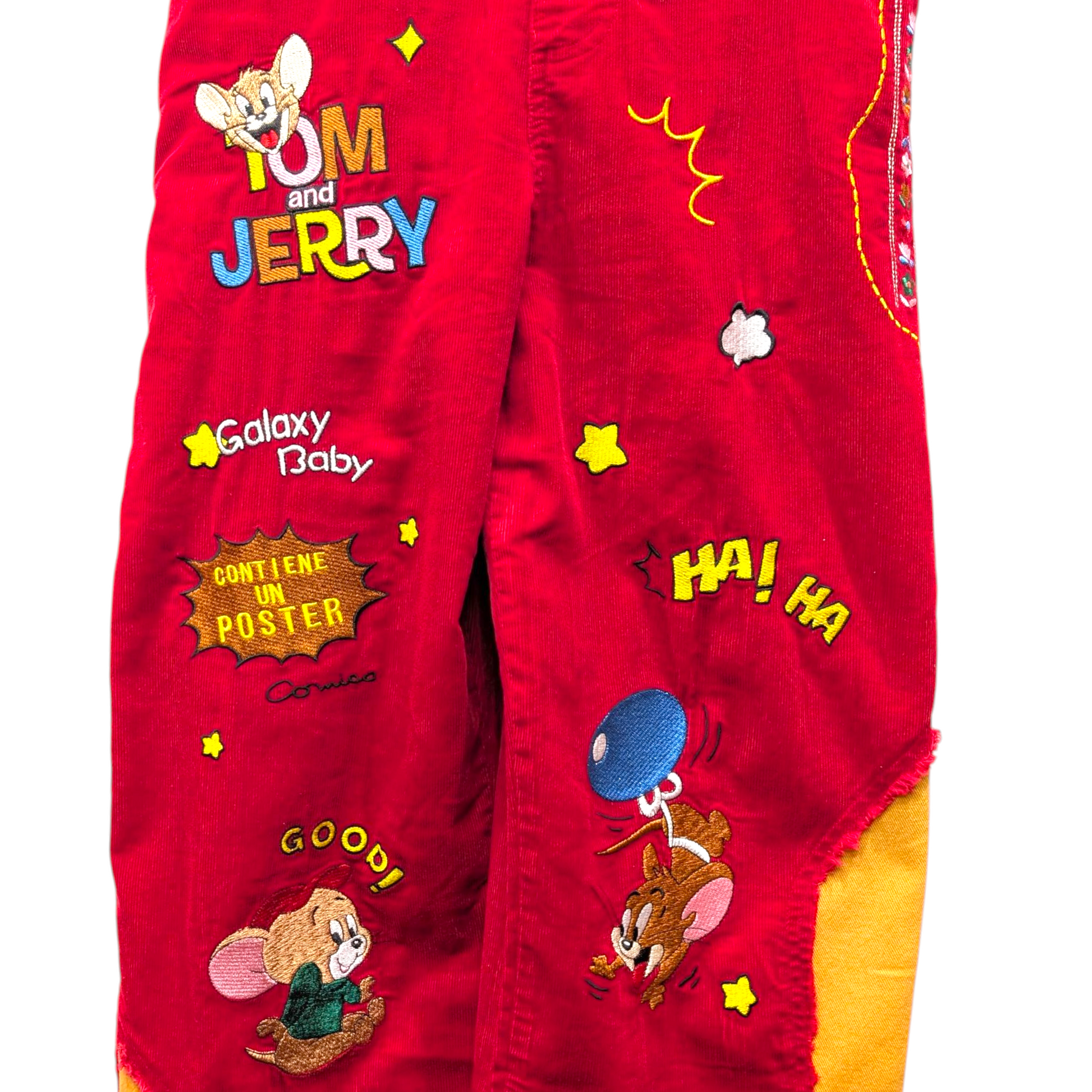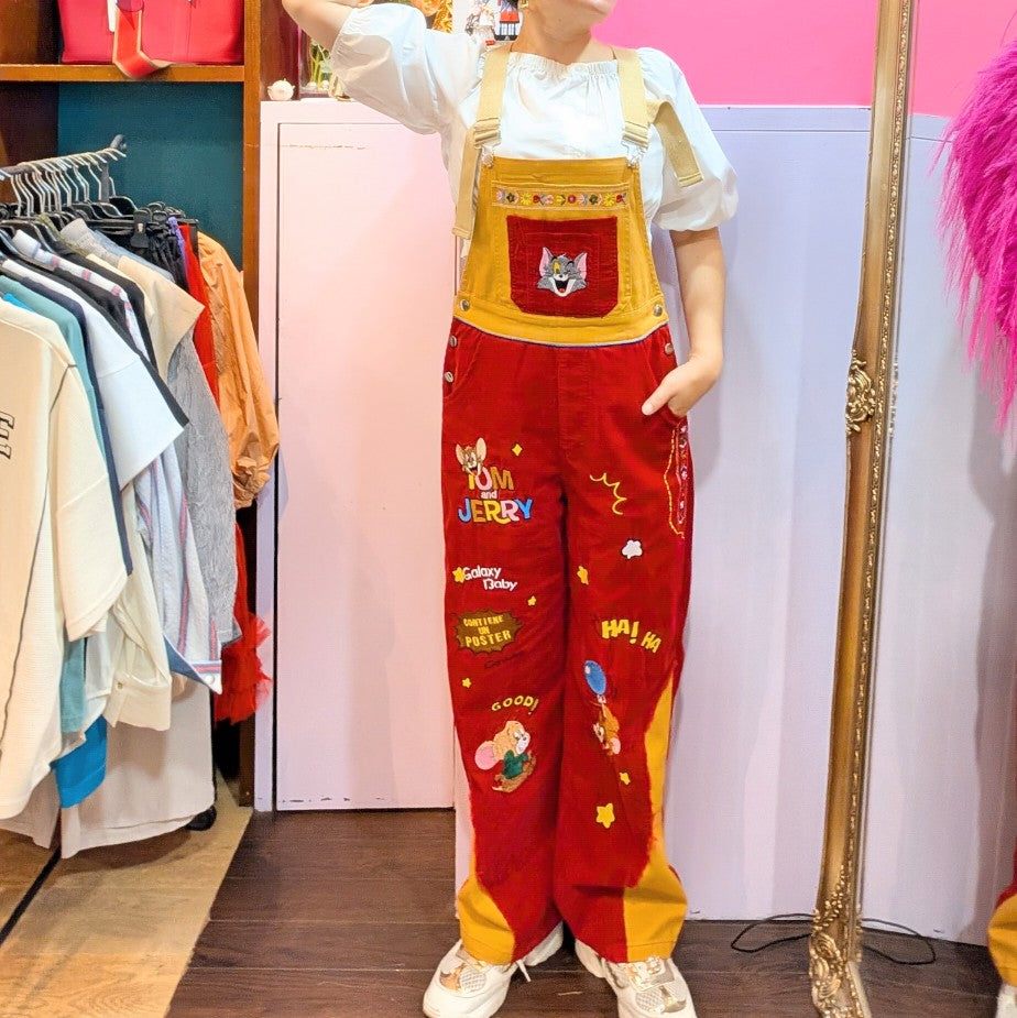 トムアンドジェリーの刺繍が華やかポップなオールインワンです。