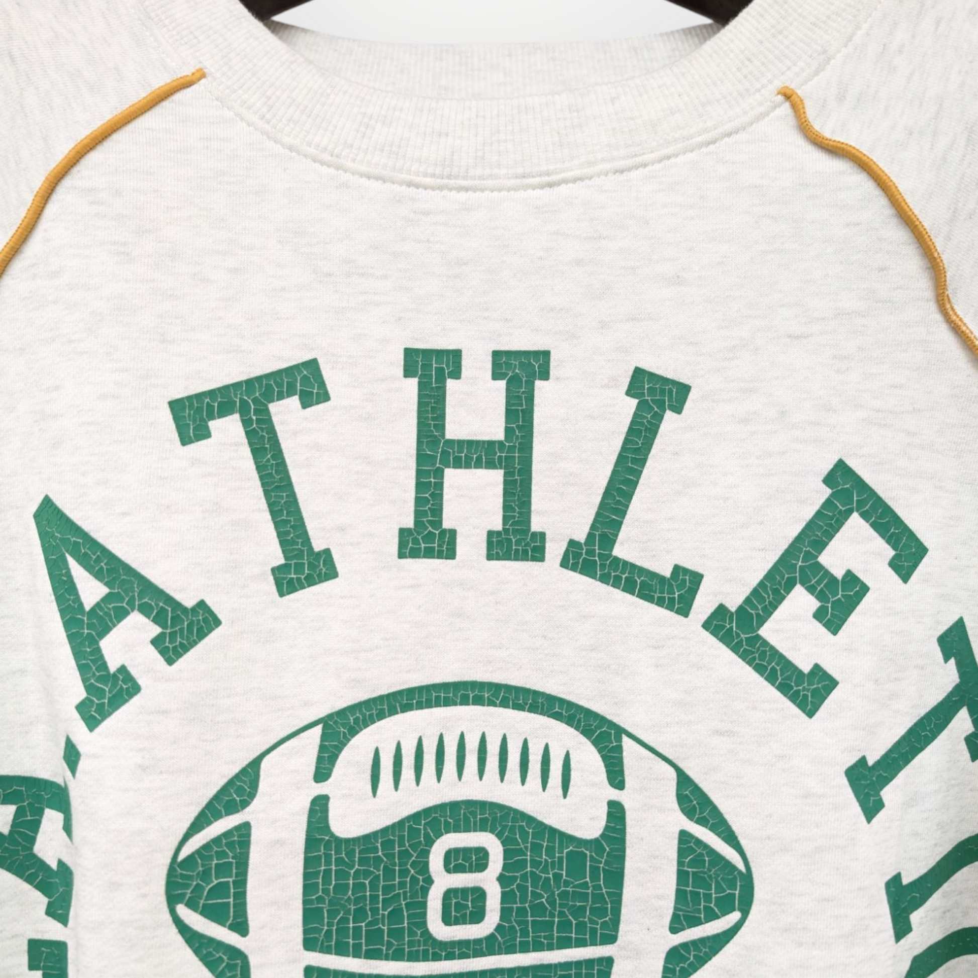 ベージュベースの生地にはグリーンロゴ&イエローステッチ。