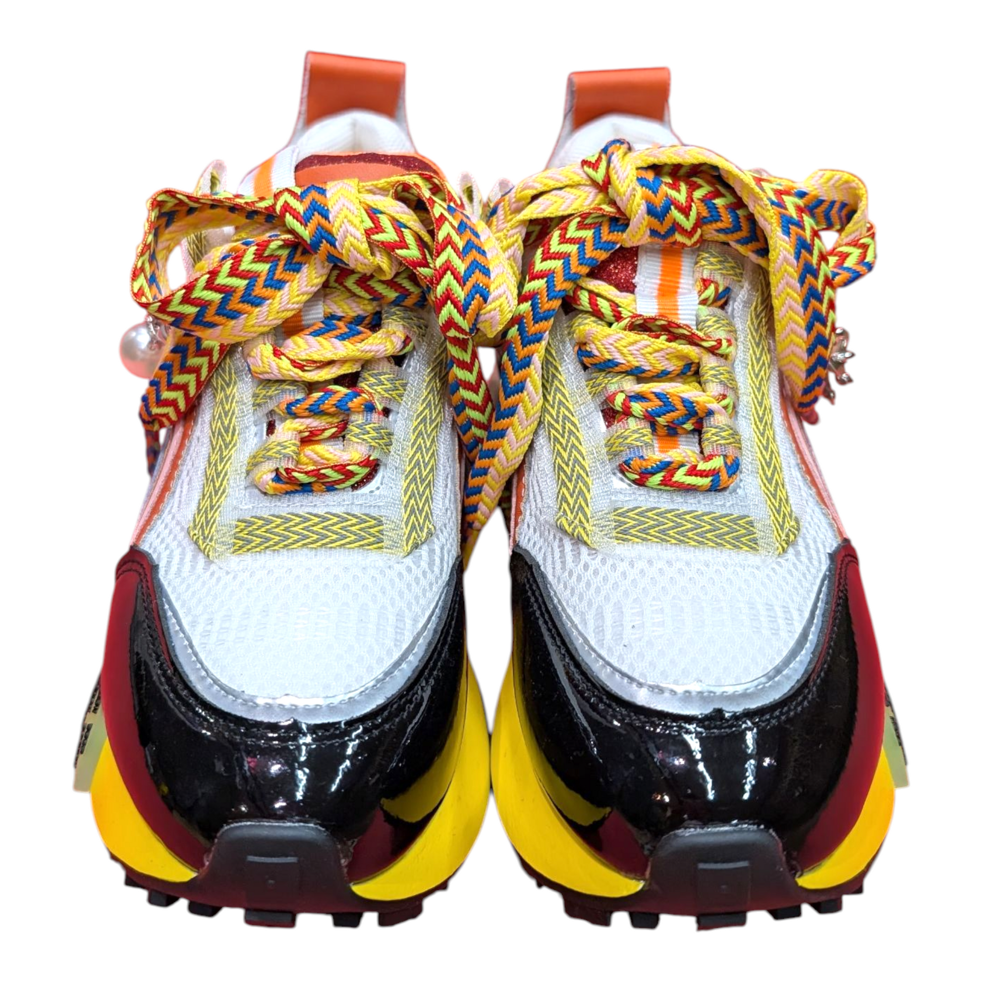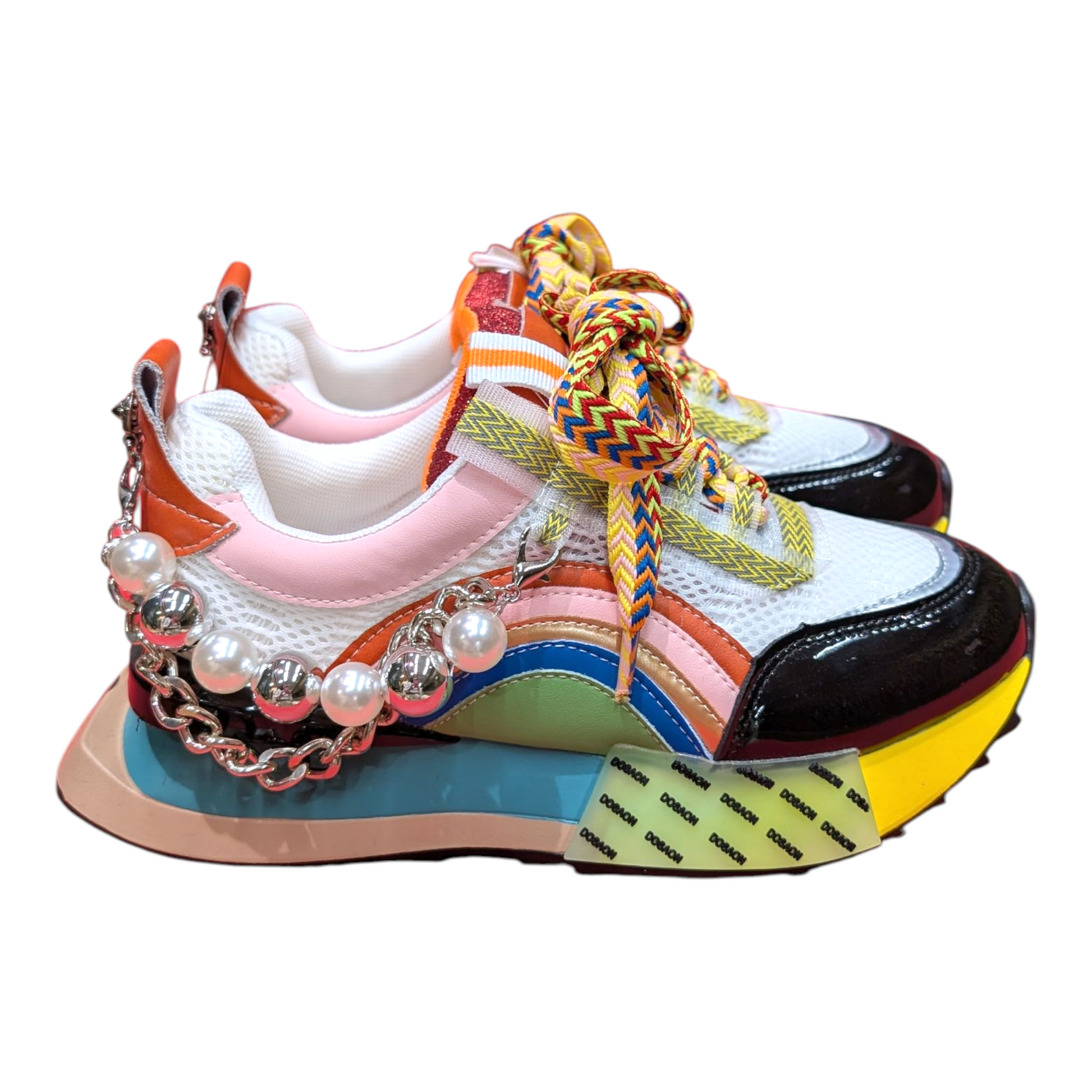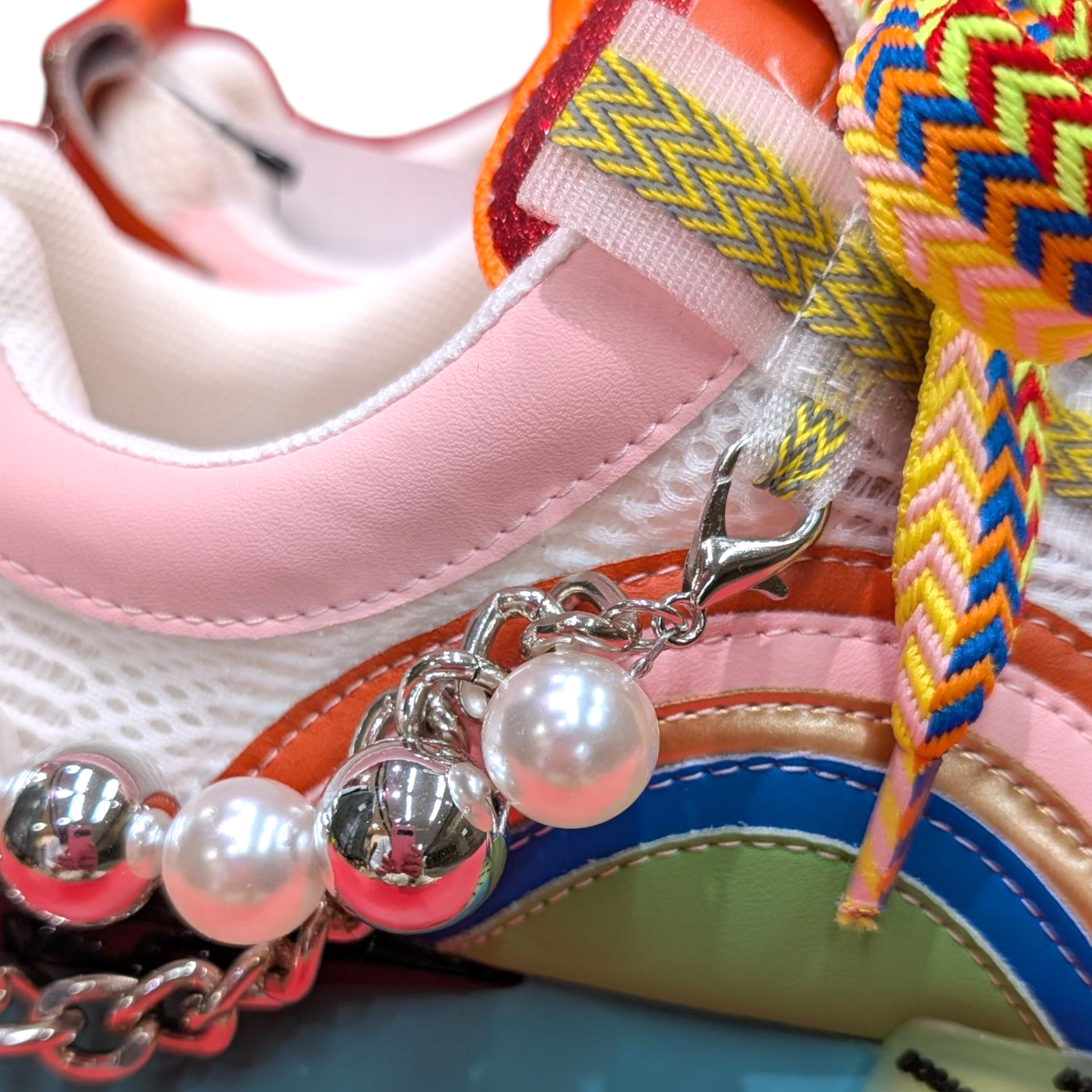 とにかく配色が華やかでなおかつパールチェーンのモチーフまで付いたスニーカー。