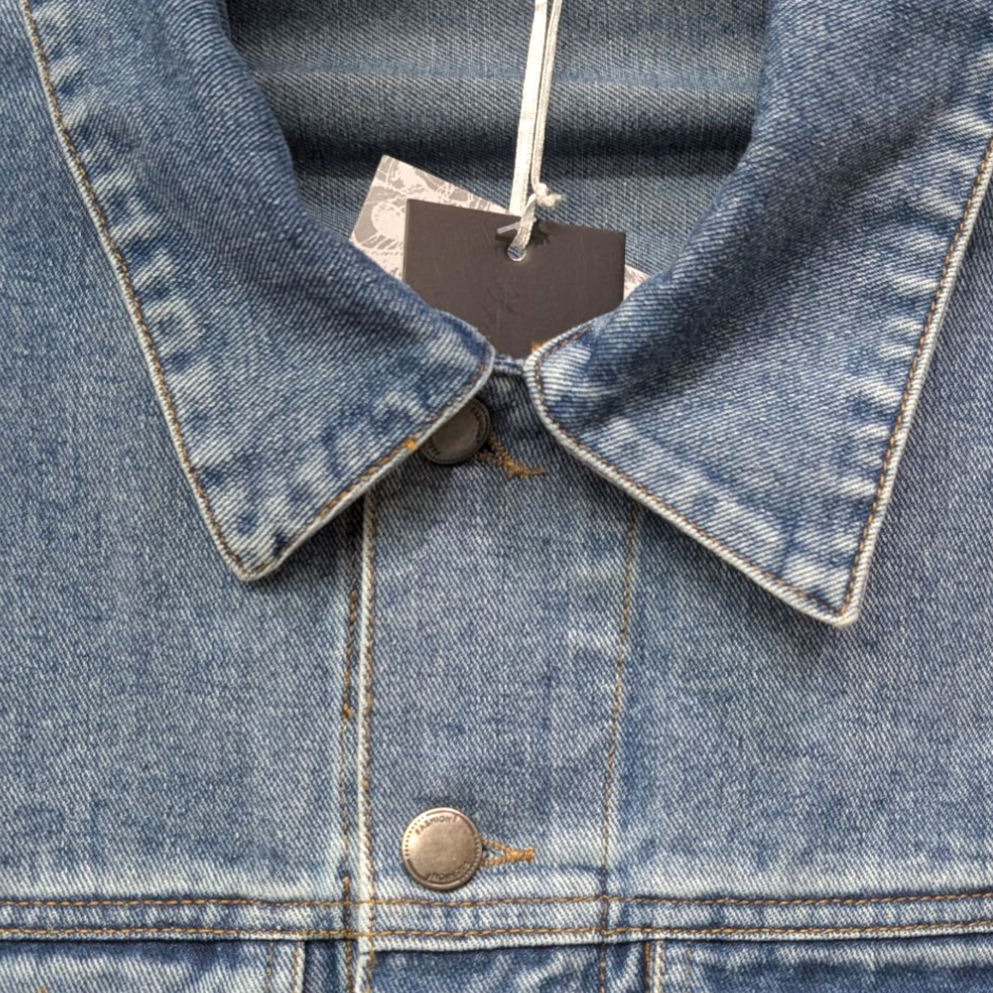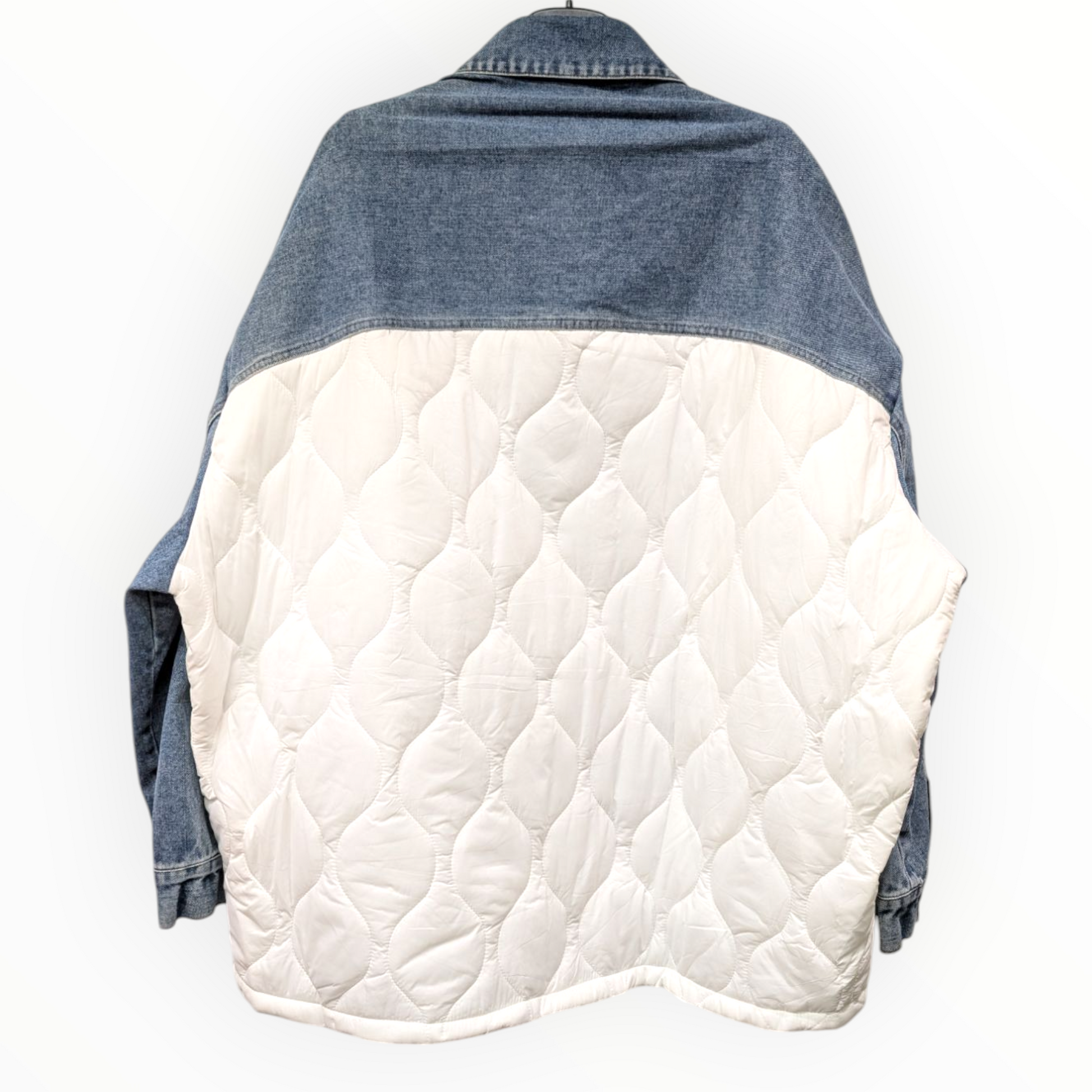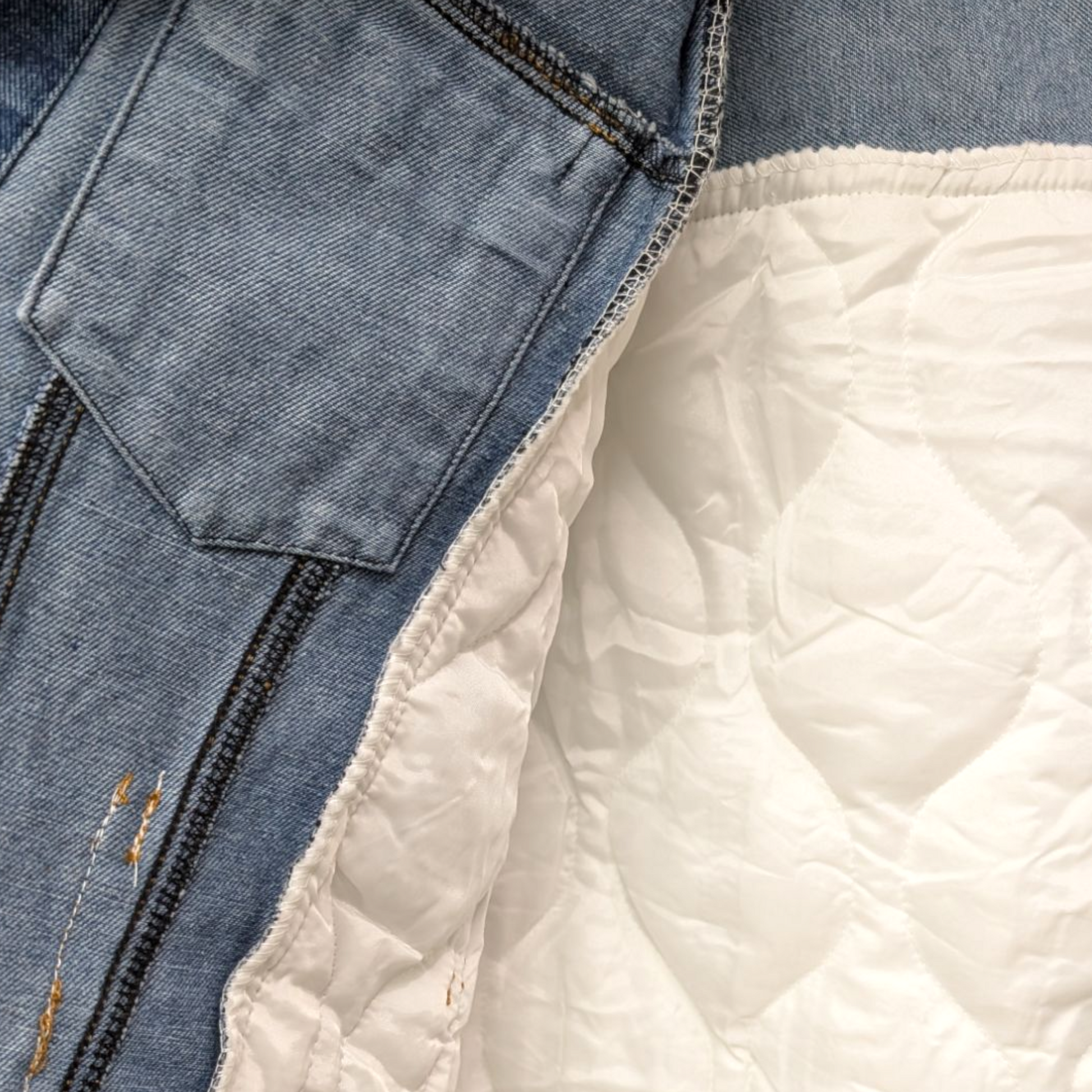 正面は短めGジャン、後ろ姿はヒップを隠す丈のキルティングブルゾン。