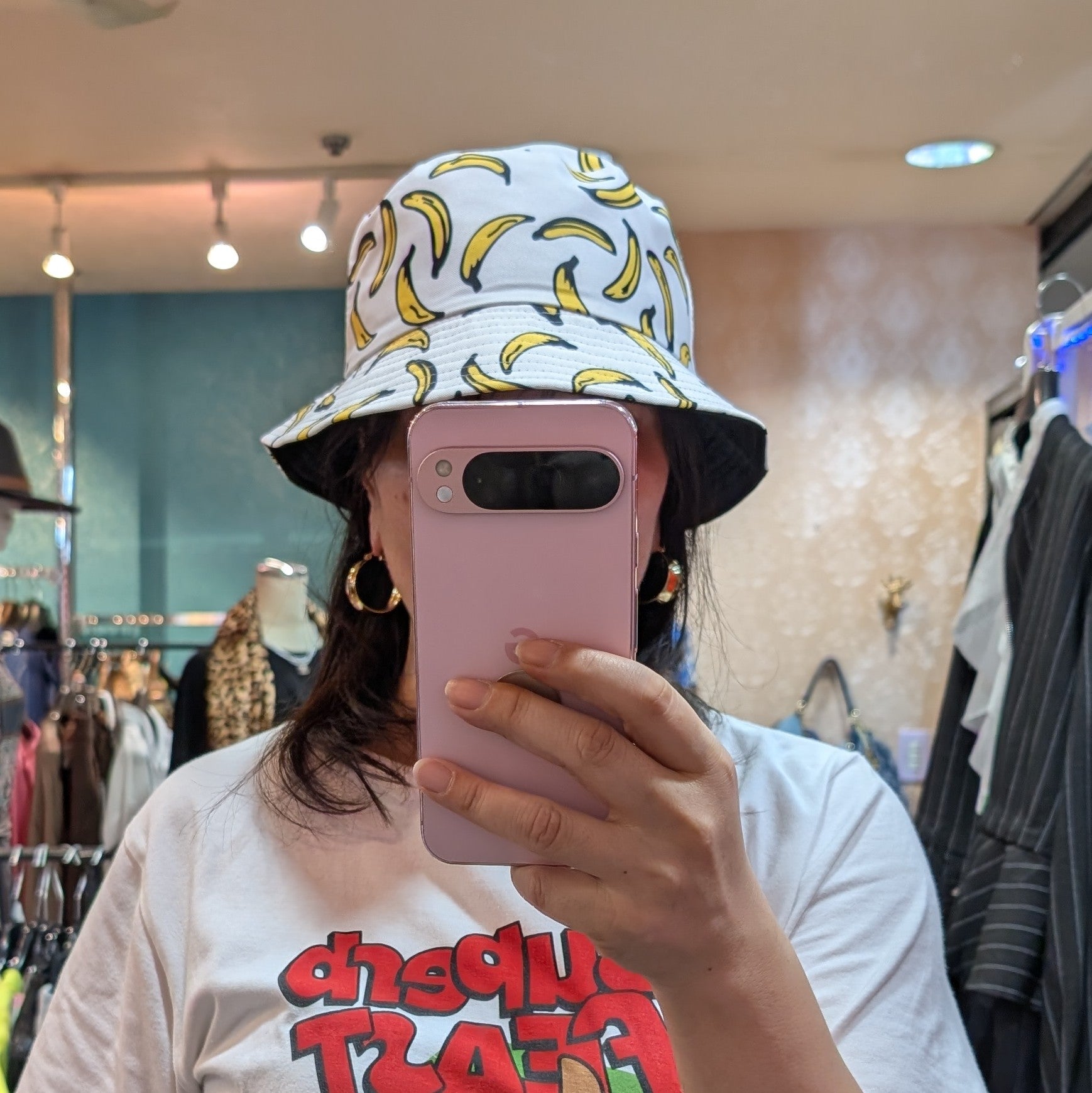 バナナプリントがかわいいバゲットハット。