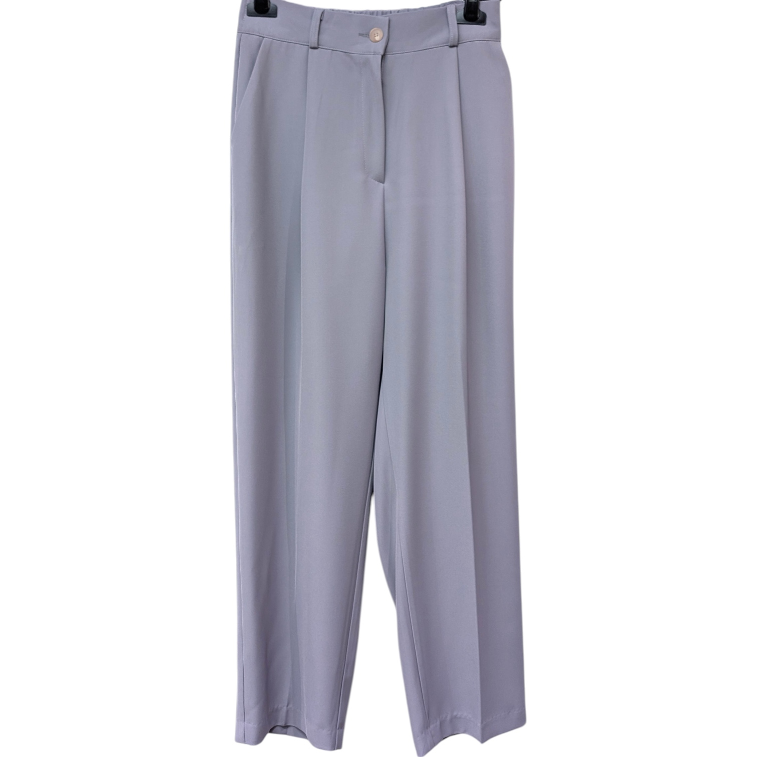 淡いラベンダー色が上品なテーパードスラックスパンツ。