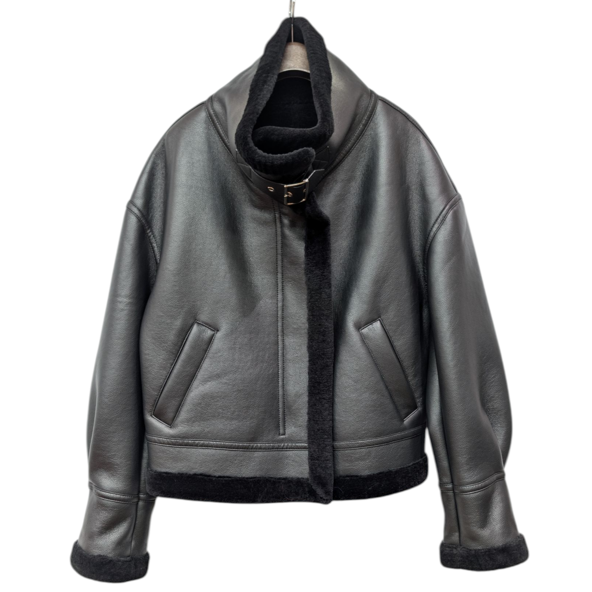 ラムレザーに羊毛を張り付けてムートン調に仕上げたブルゾンです。