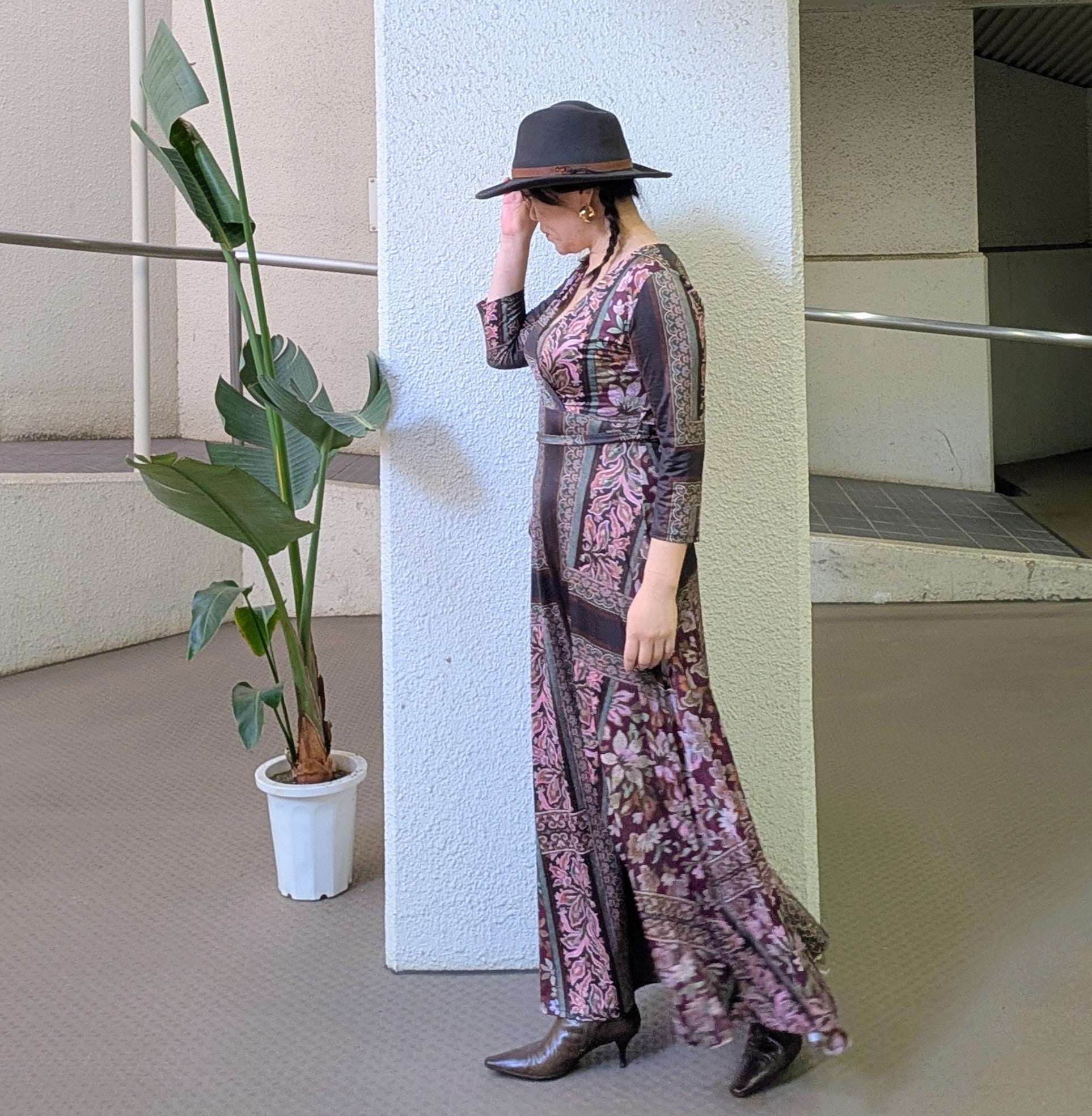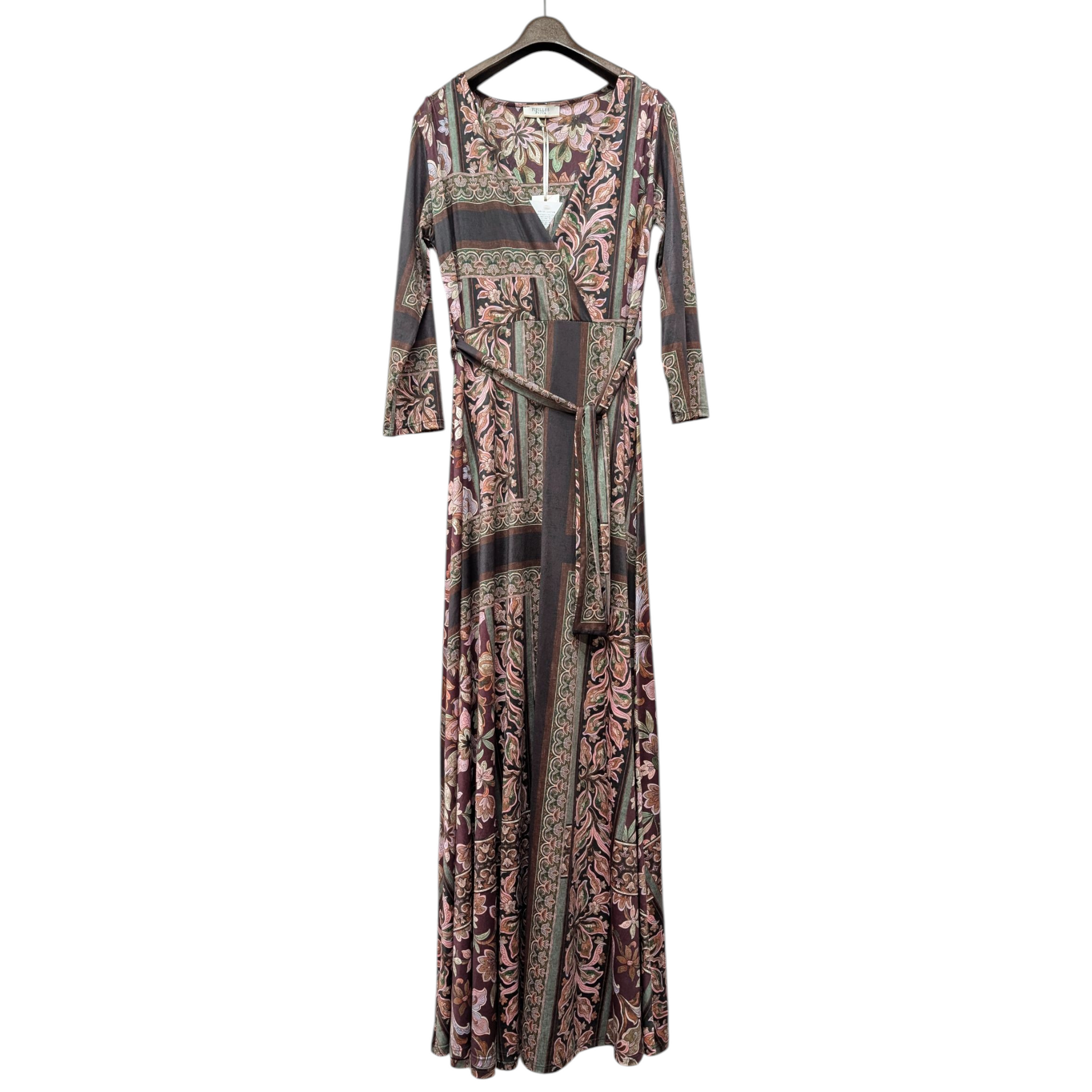 フランス生地を使ったシックな柄のマキシワンピースです。