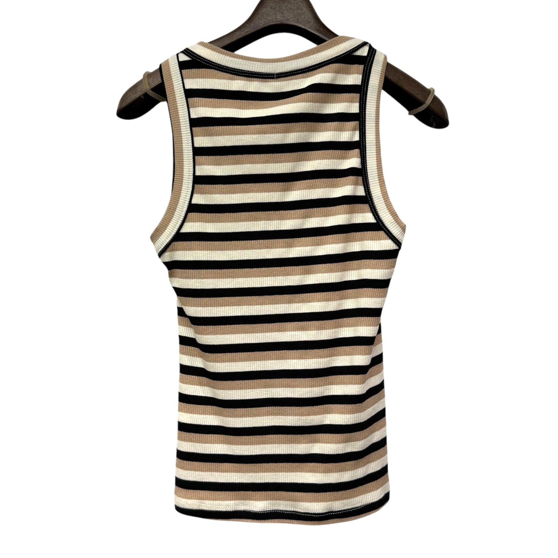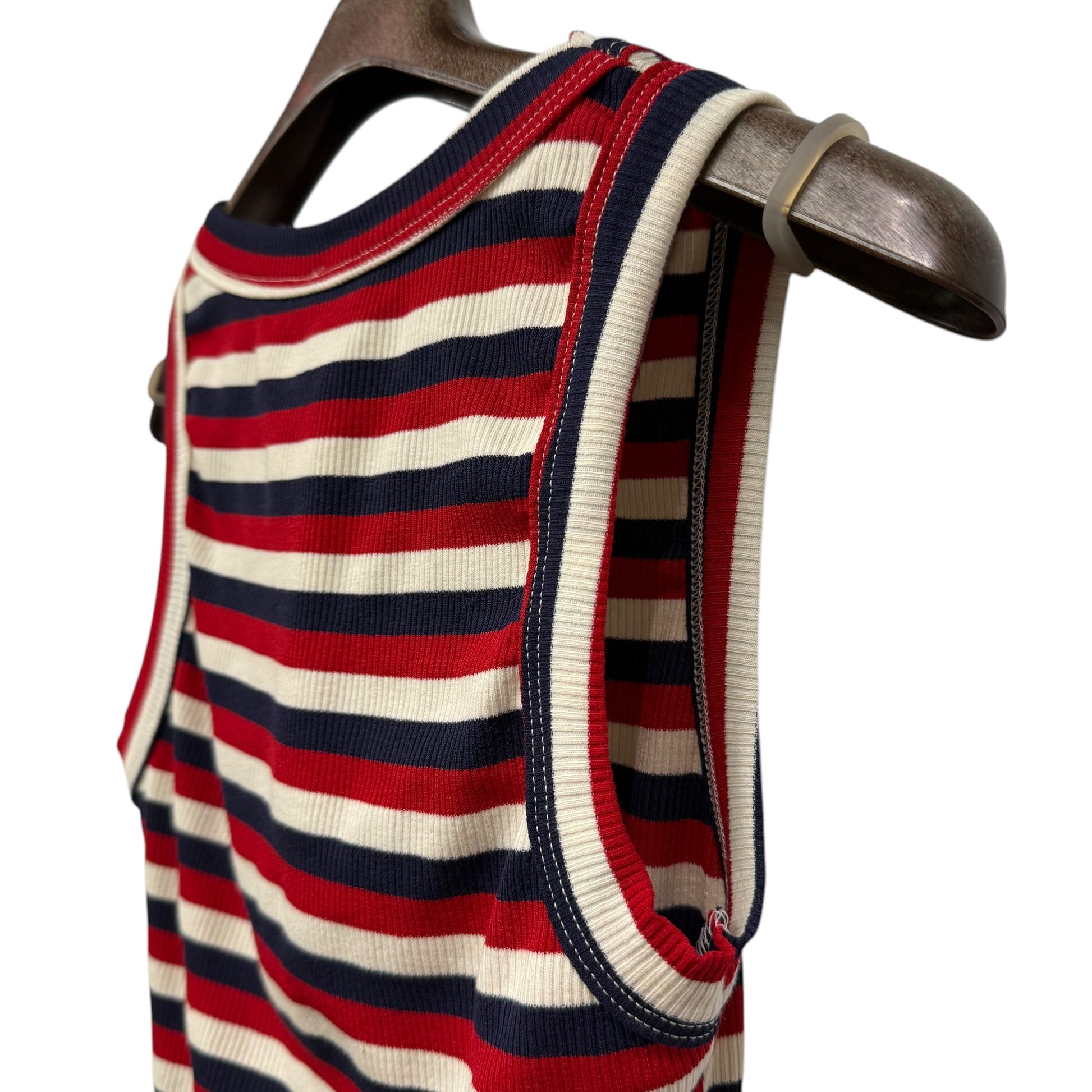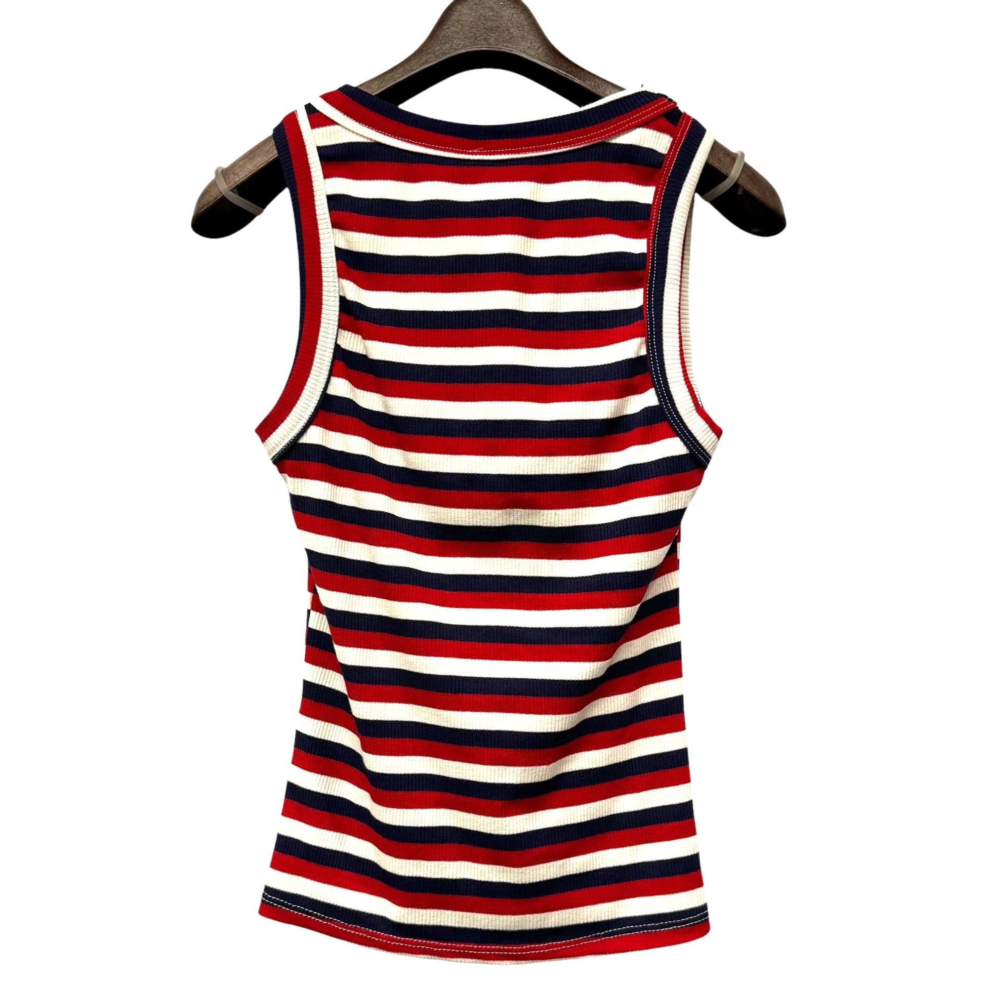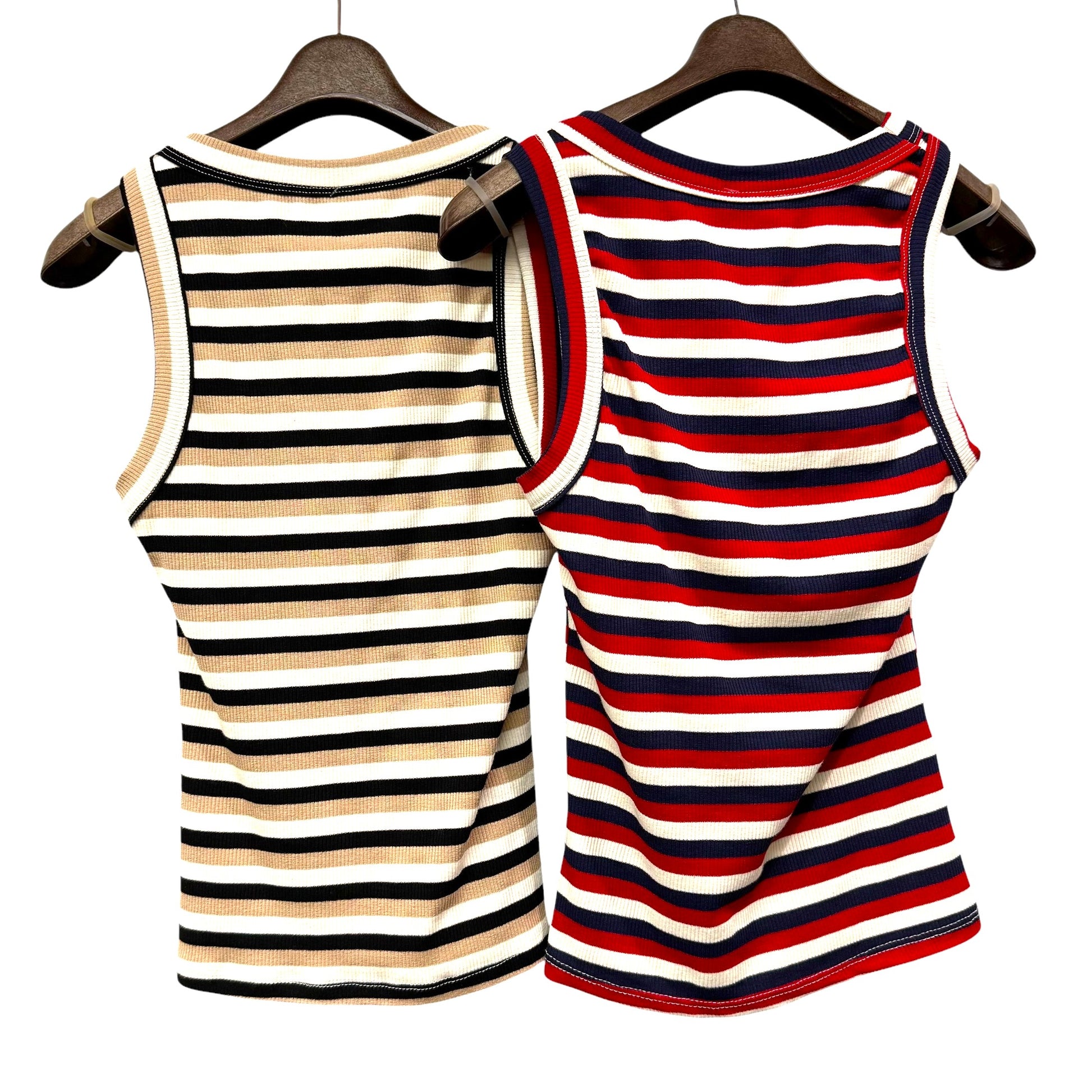 ボーダーリブがとても伸びて着心地の良いタンクトップです。