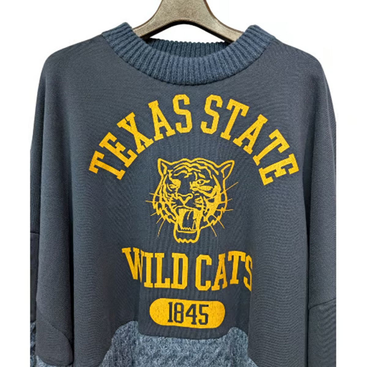 ヒップが隠れる丈ですが、ニット切替えによって短めの白いスウェットを着ているかのような見え方になります。