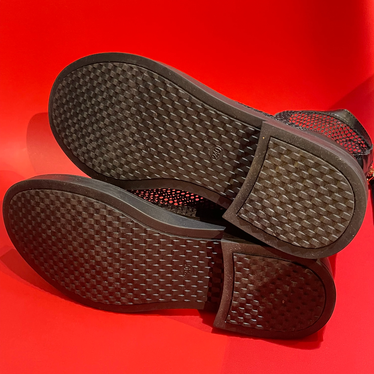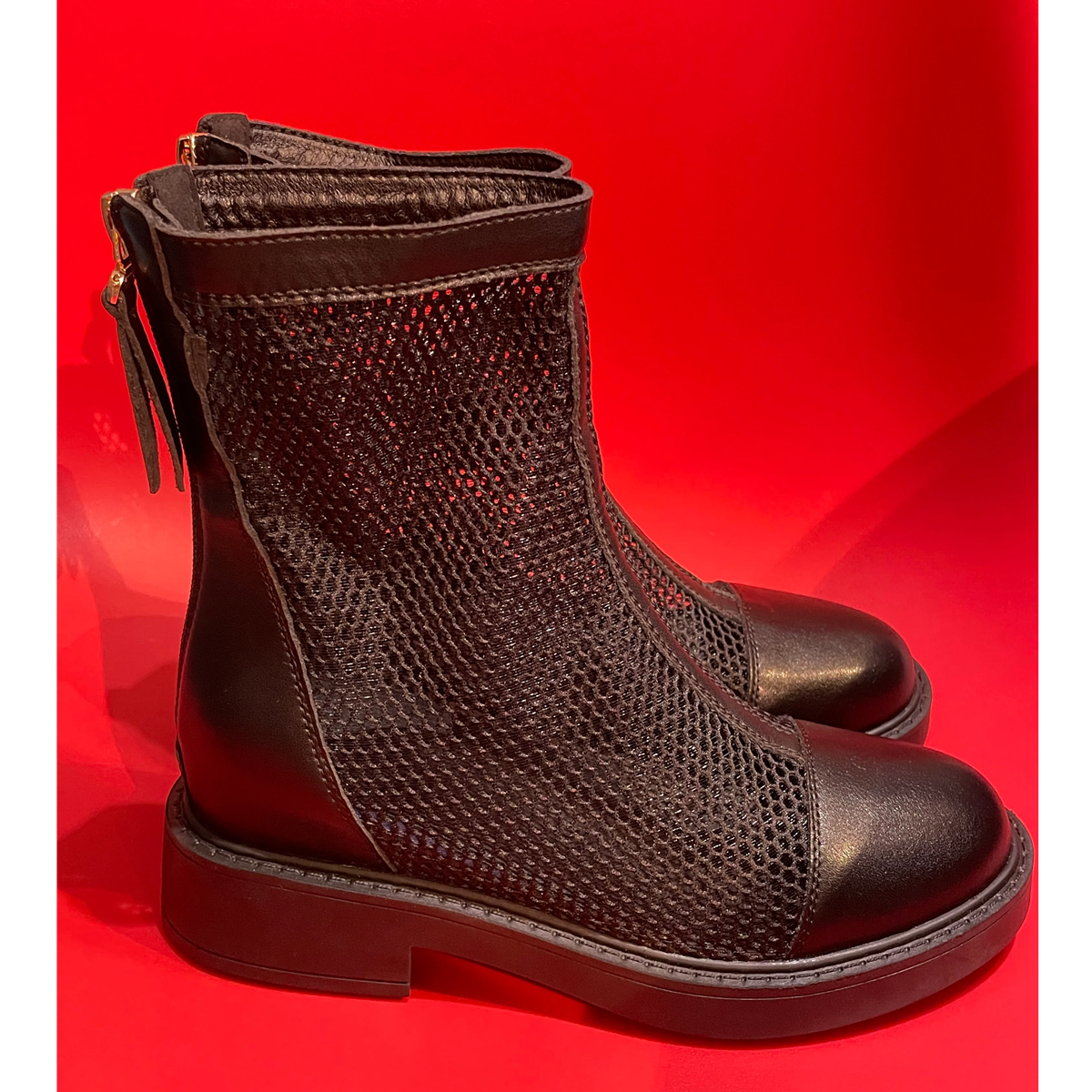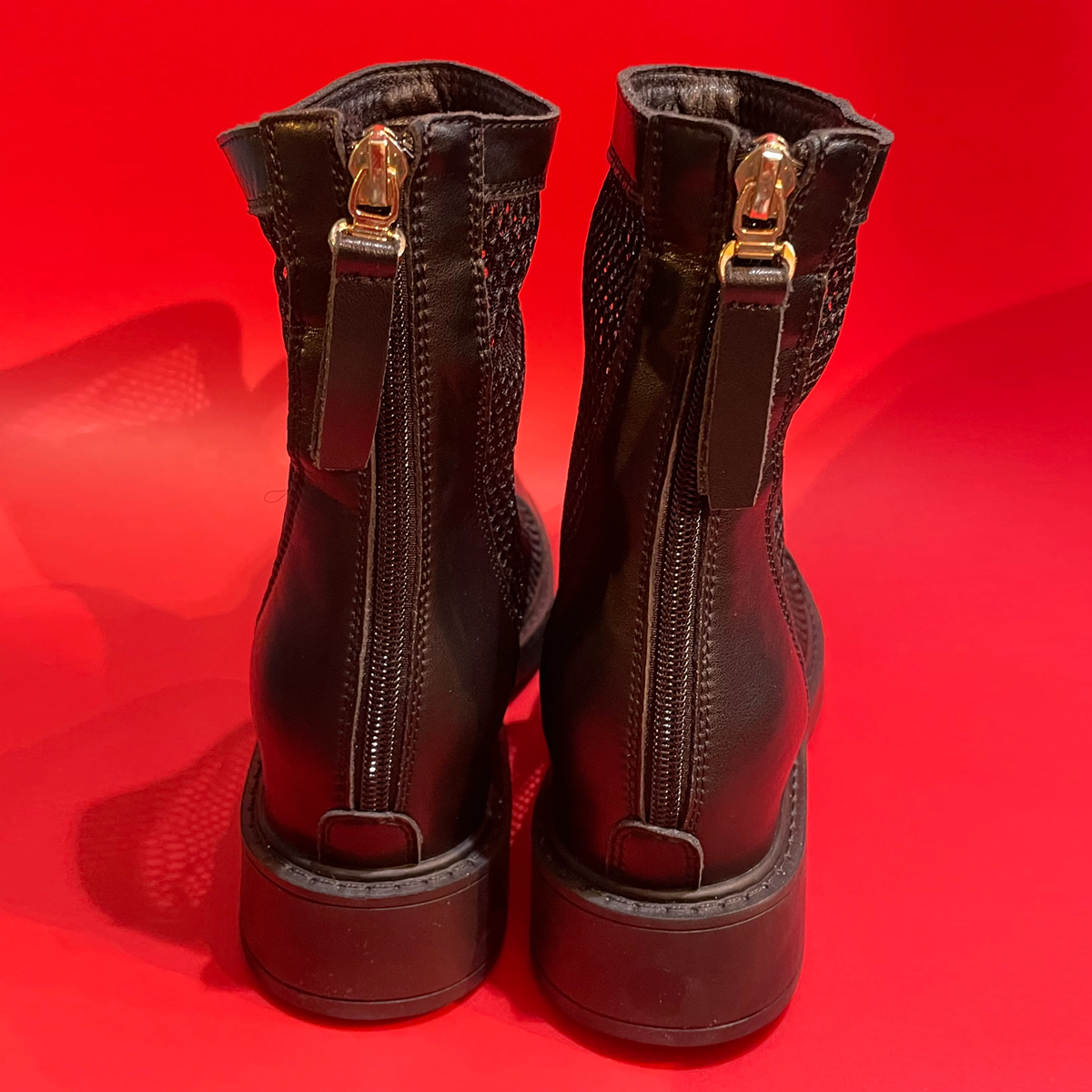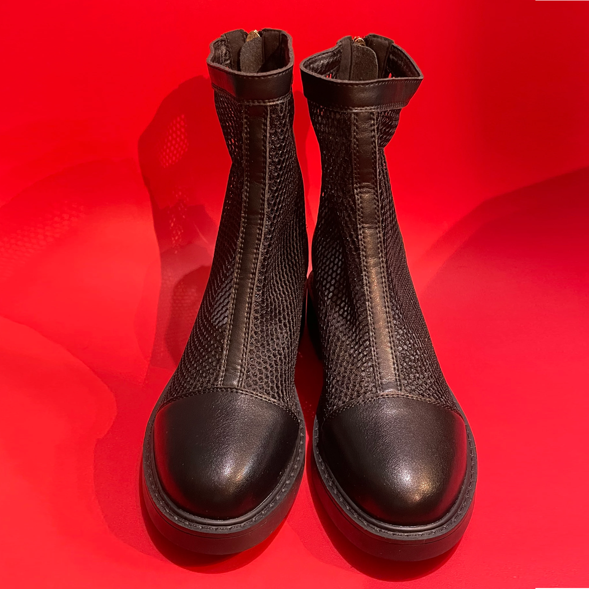 インヒール本革メッシュショートブーツ ブラック 24㎝