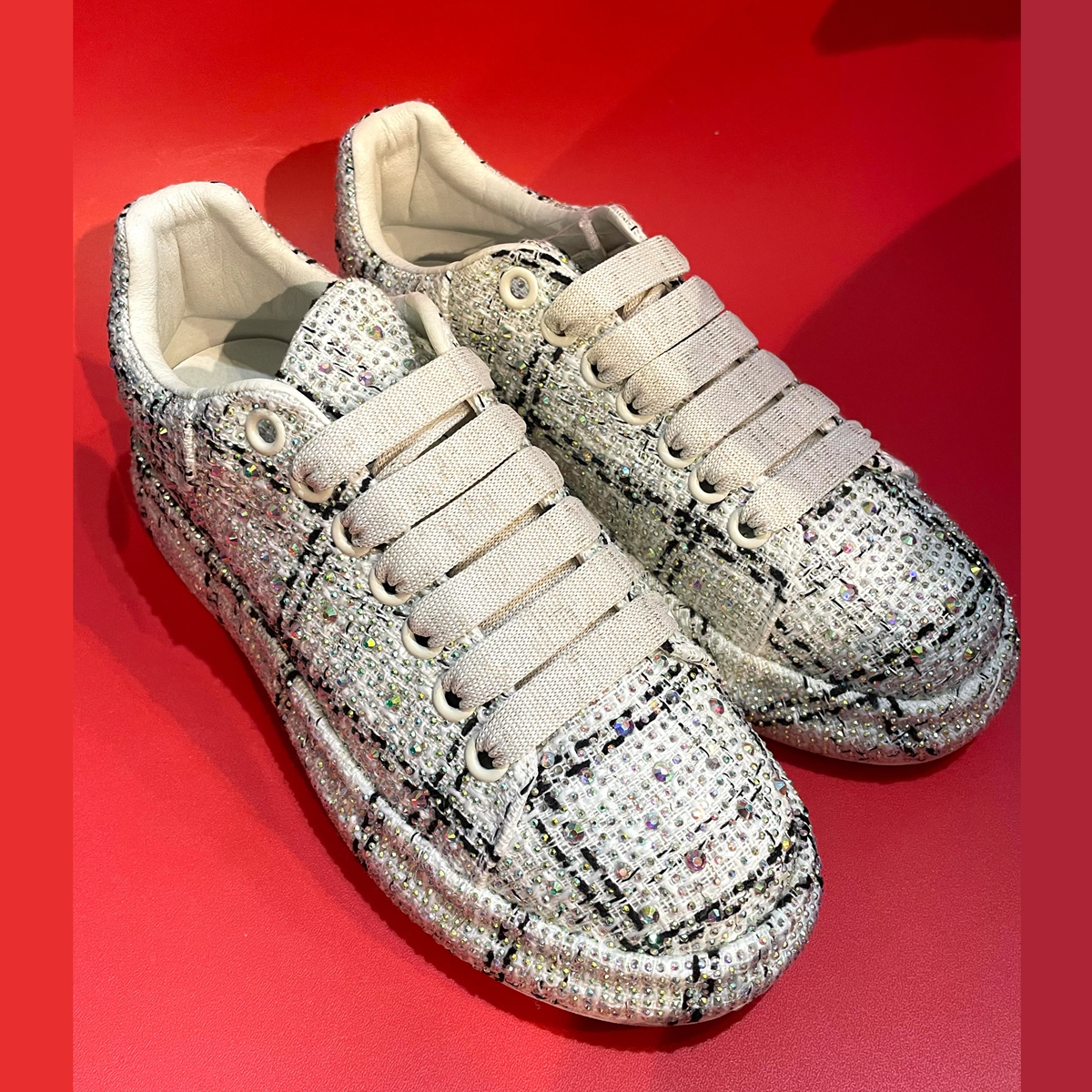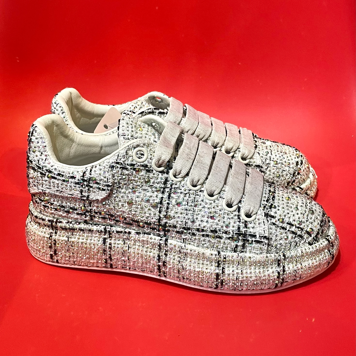ラインストーンチェックスニーカー
