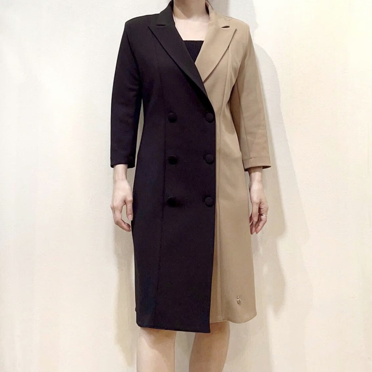 【RINASCIMENTO】バイカラーテーラーダブルワンピース