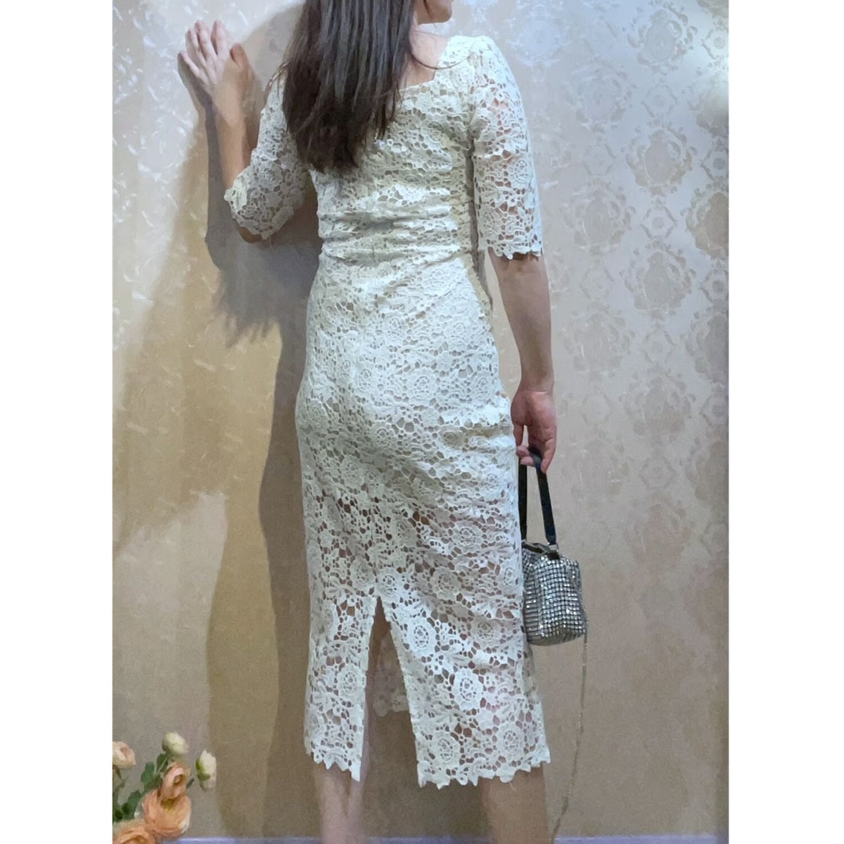 総レースのタイトシルエットドレスです。