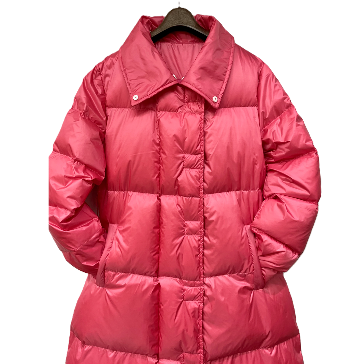 ウエストを絞ったデザインなので着ぶくれせずにすっきり着て頂けるロング丈です。