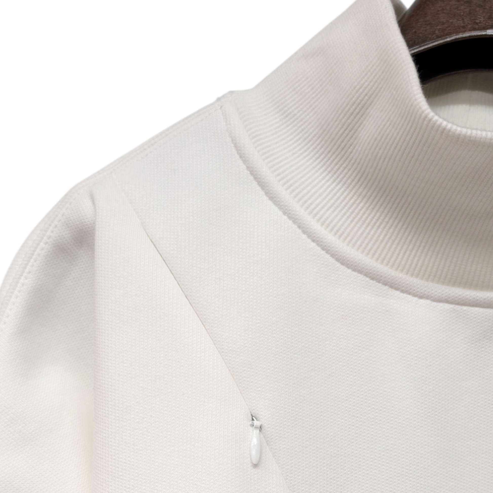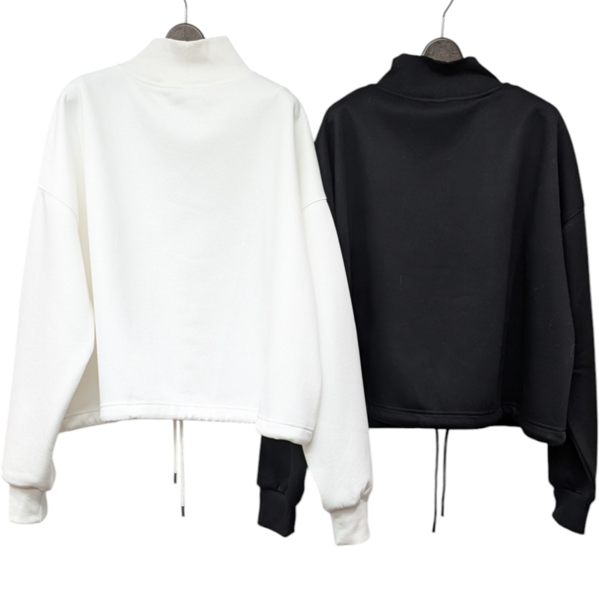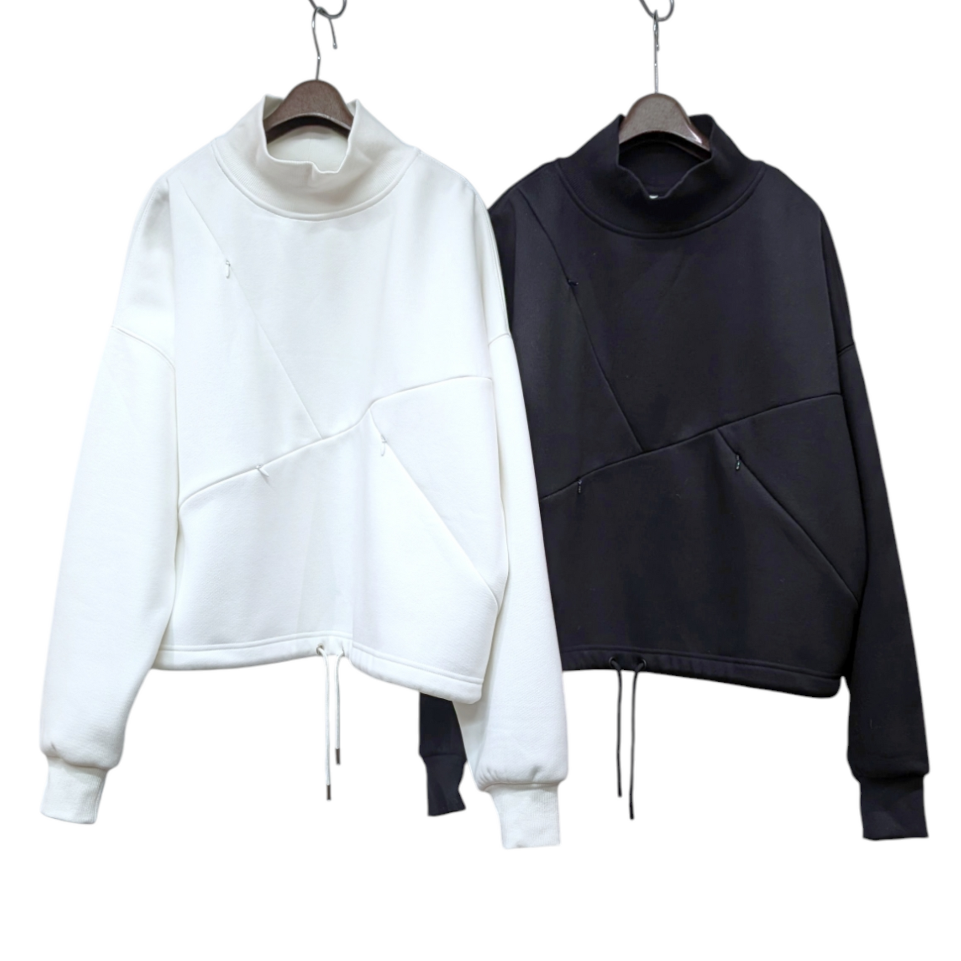 首はしっかりしたリブで暖かく、1枚で冬に対応できるトップスとなります。