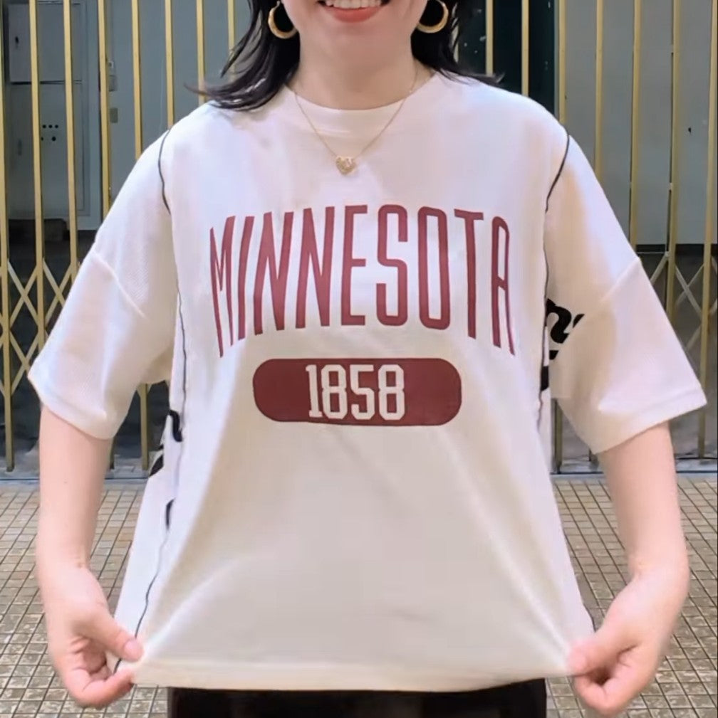 サーマル生地との切り替えとバックプリントがかわいいロゴTシャツです。